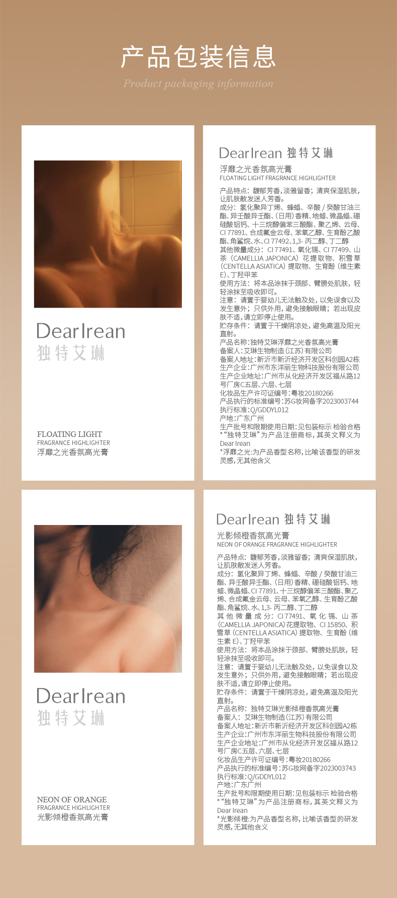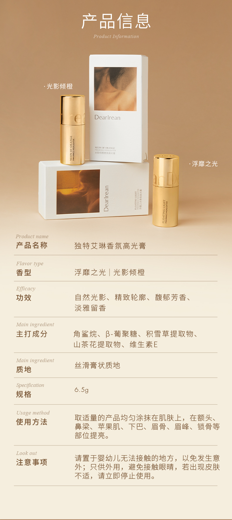 Dear lrean 独特艾琳香氛高光膏6.5g【YW】
