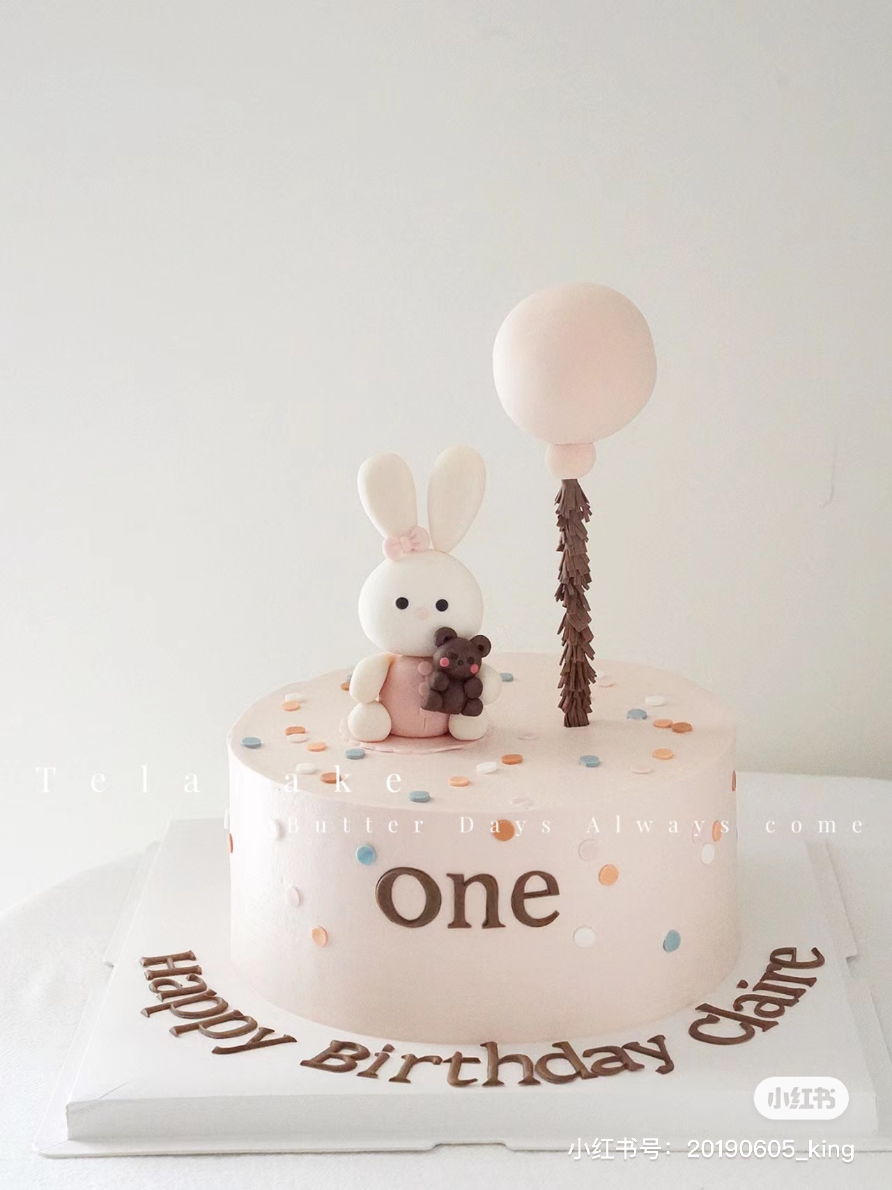小兔抱小熊卡通动物蛋糕-低糖处理无添加