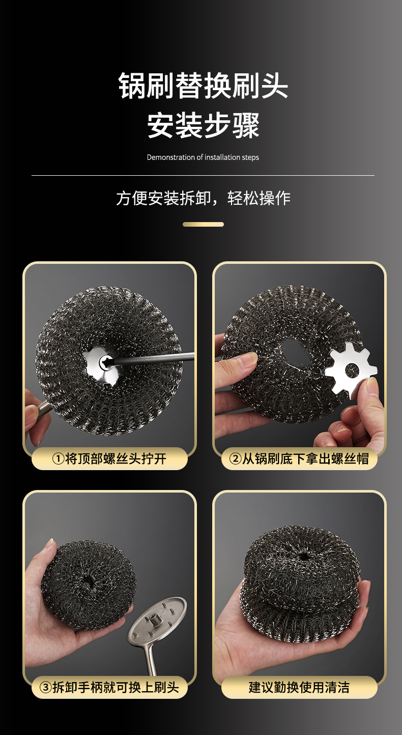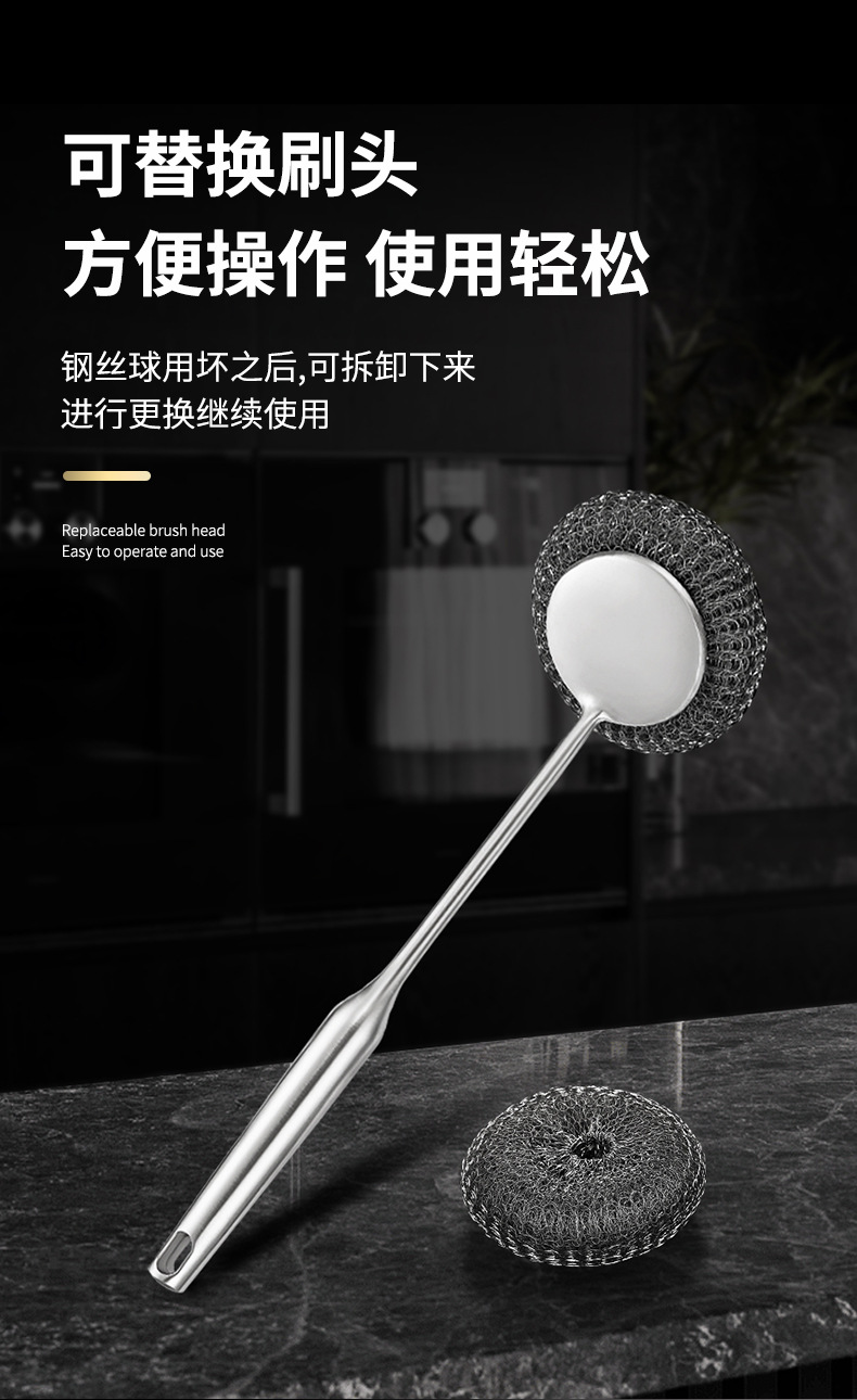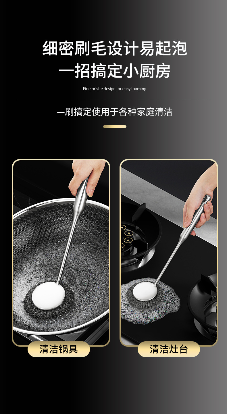 「340不锈钢刷!送钢丝球」不锈钢锅刷家用厨房洗锅刷洗碗刷专用长柄不掉丝钢丝球锅刷用品
