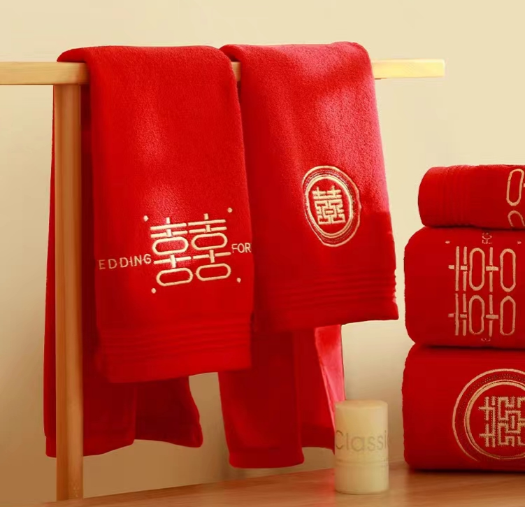 【2条装】自然醒双喜毛巾纯棉红色结婚毛巾一对装喜事毛巾回礼伴手礼新婚陪嫁全棉大红WDF
