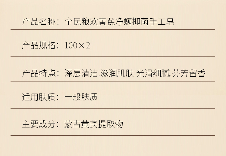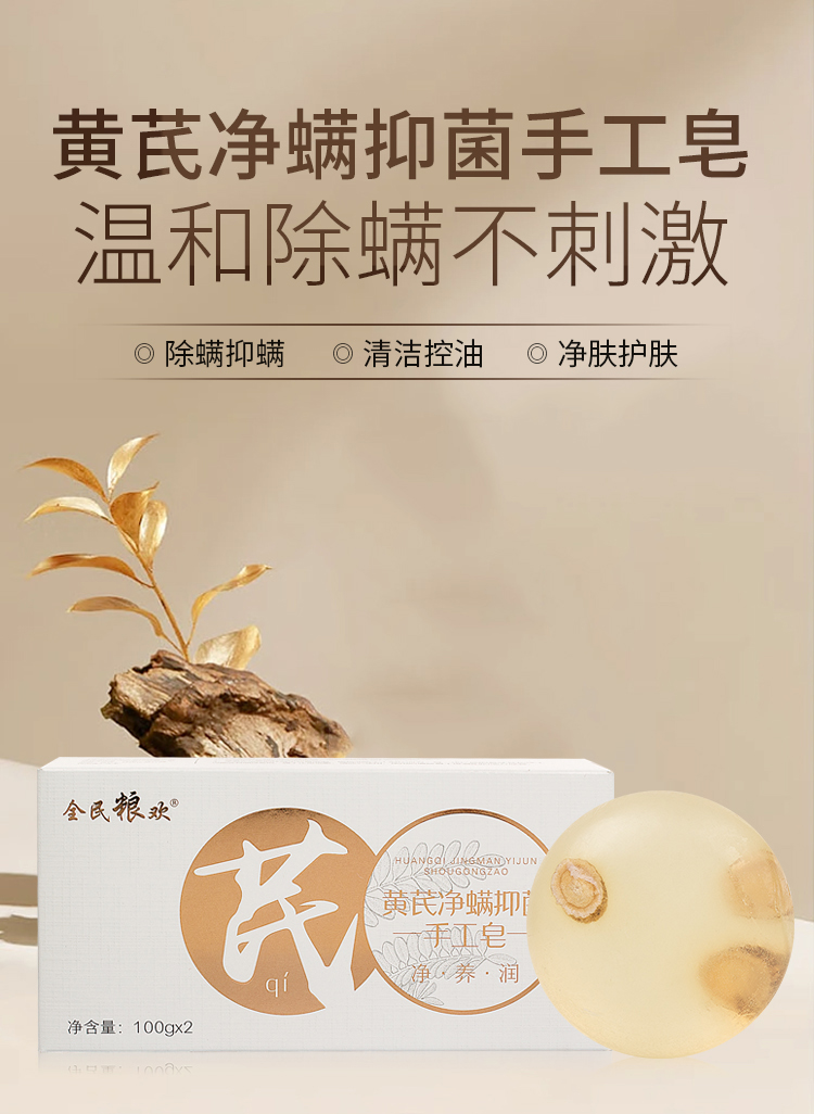 【自营】全民粮欢 黄芪净螨抑菌手工皂 100g*2块 NM