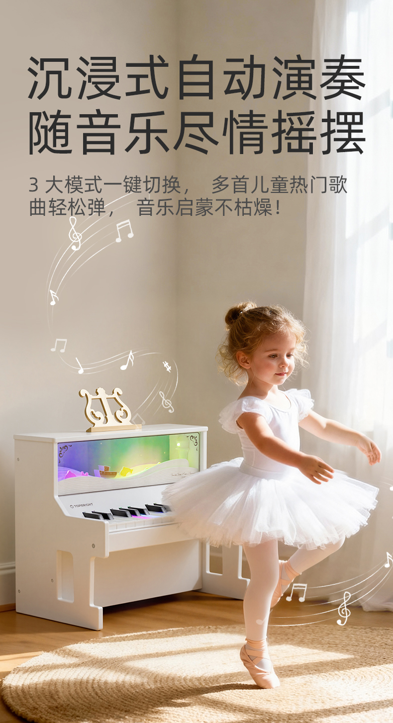 特宝儿木质儿童小钢琴宝宝可弹奏乐器入门多功能电子琴玩具女孩