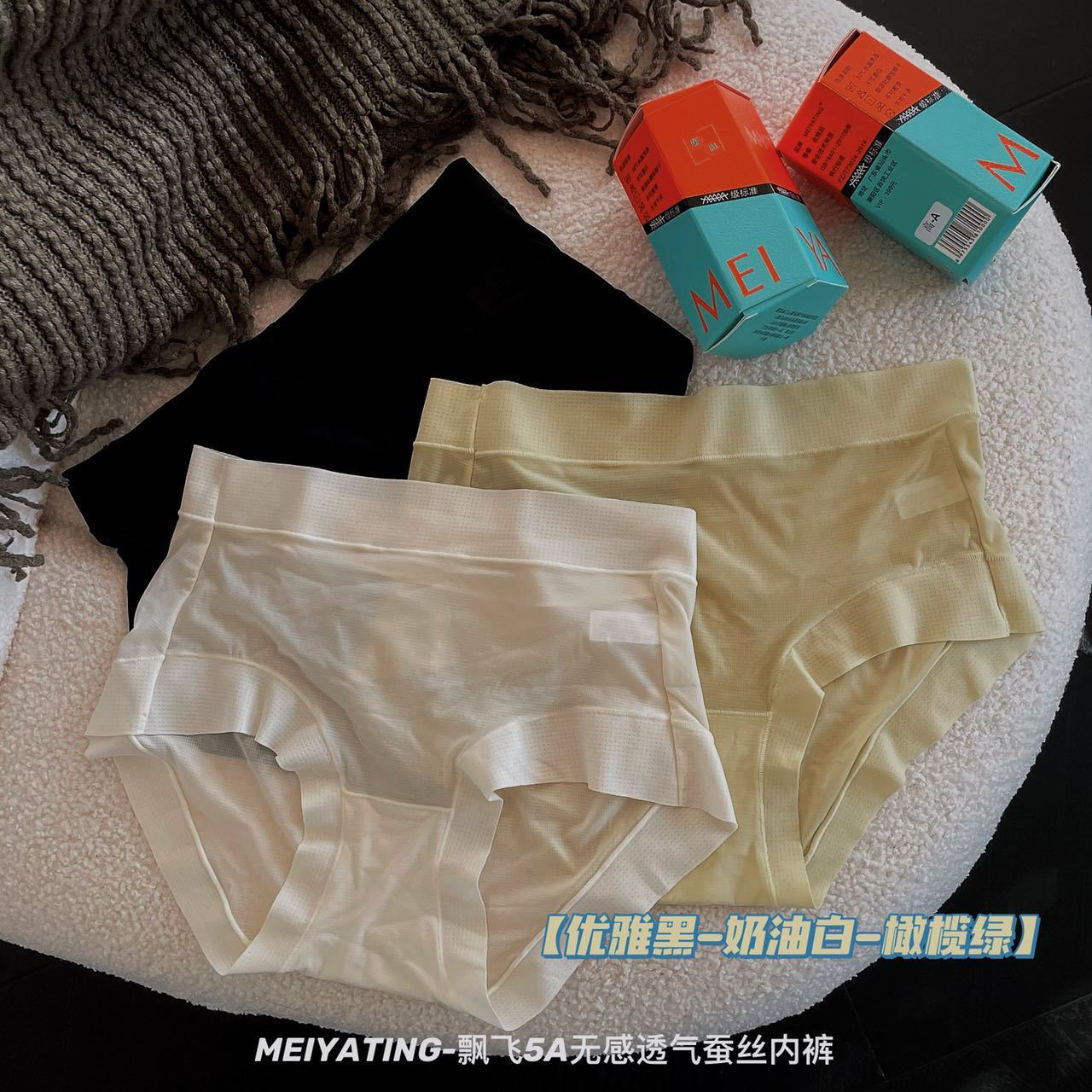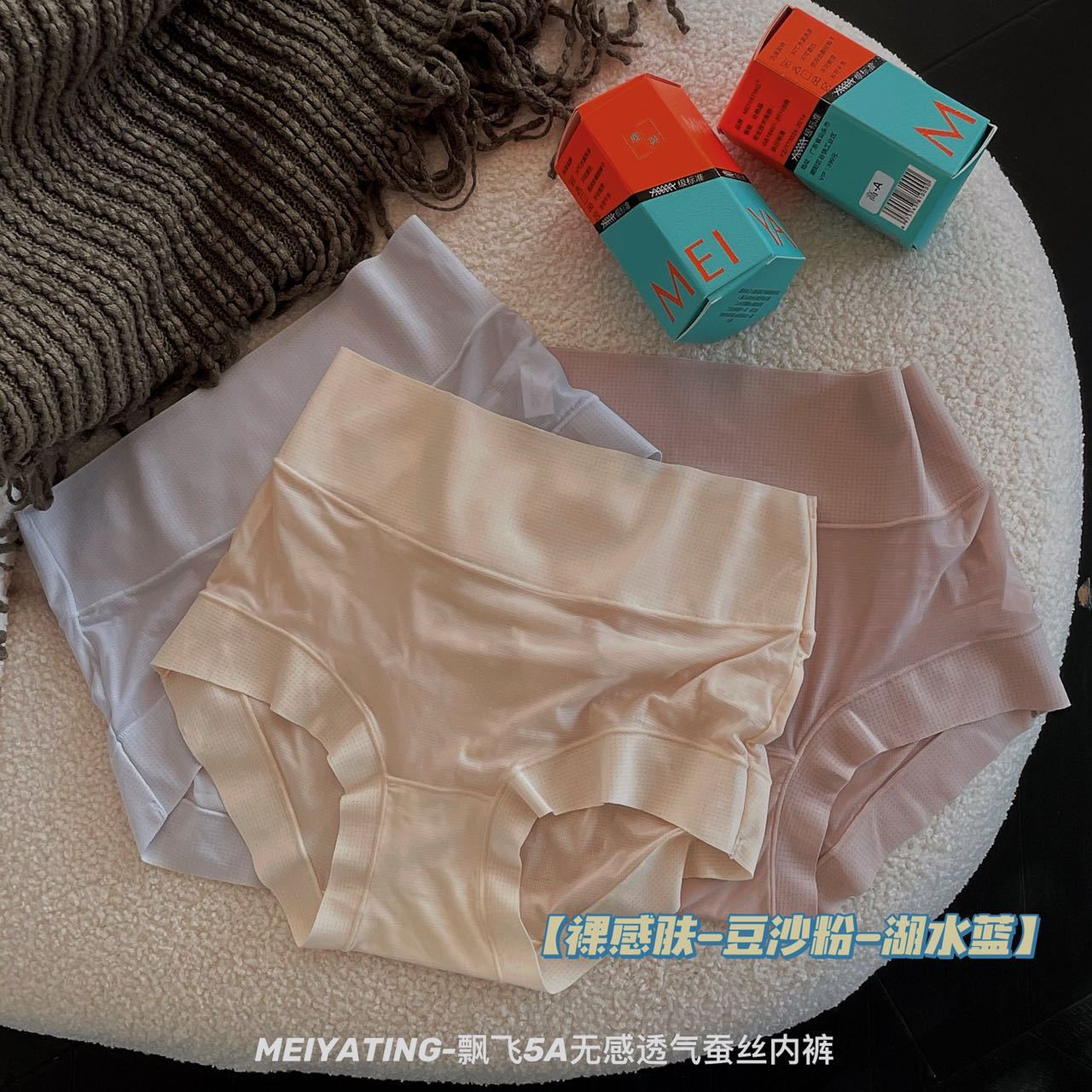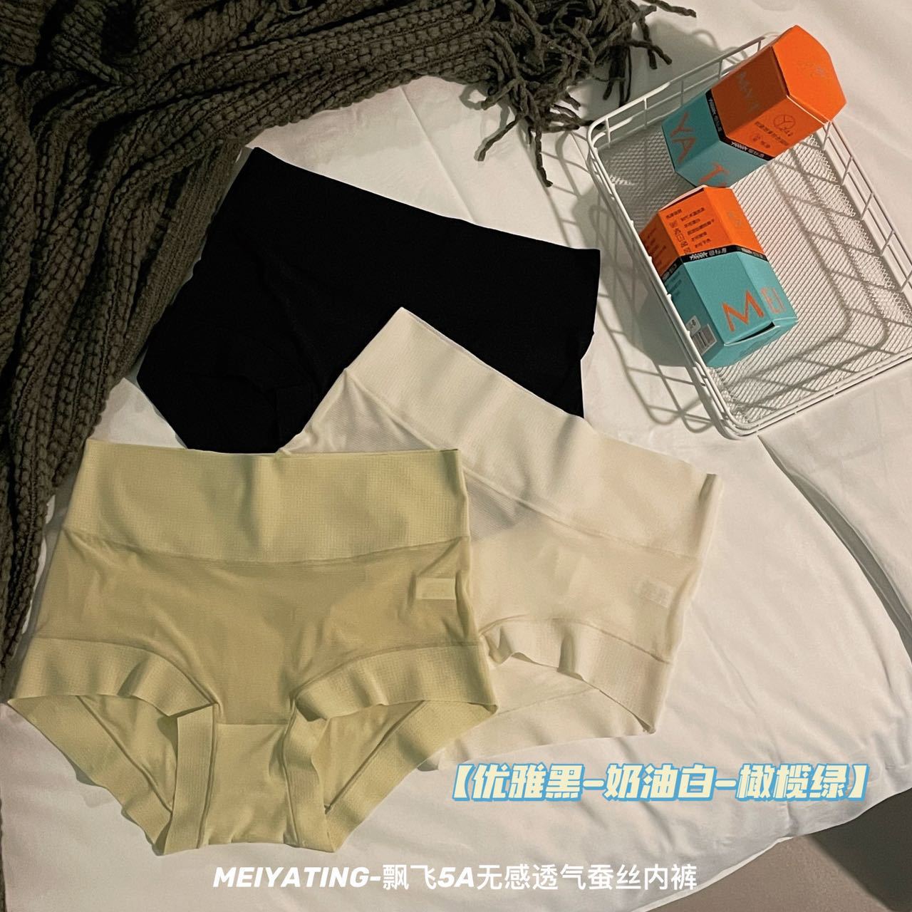 新款飘飞5A无感透气蚕丝内裤女盒装轻薄舒适抑菌底裆中高腰三角裤