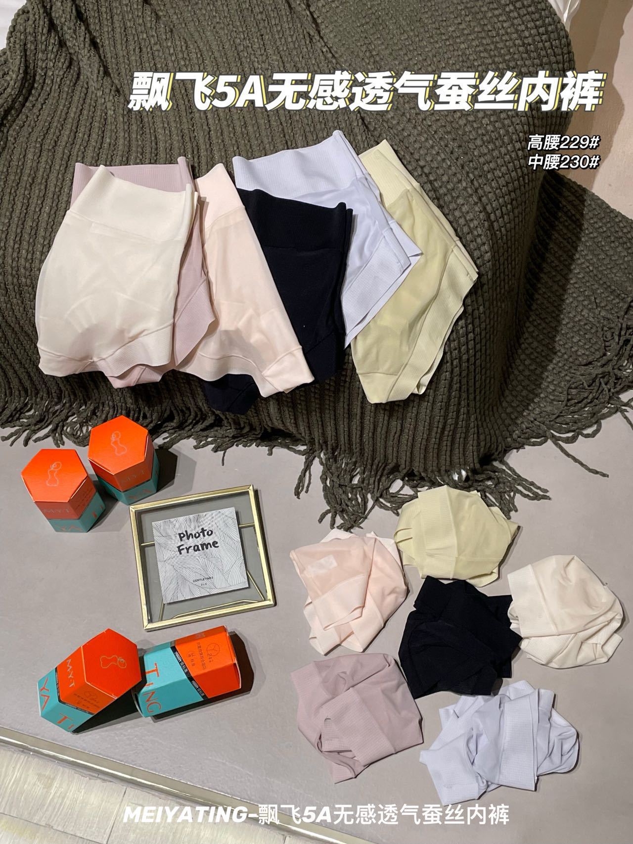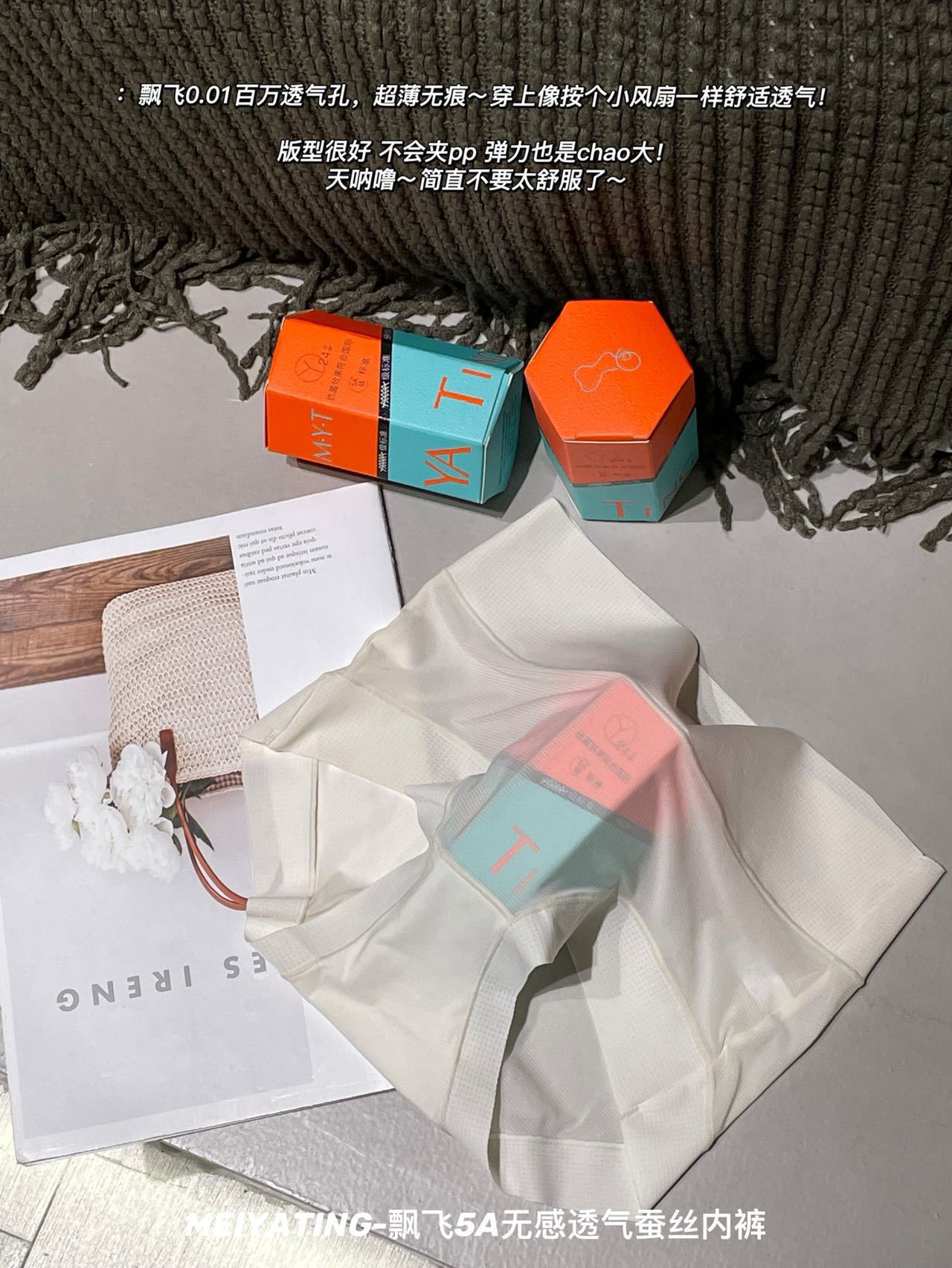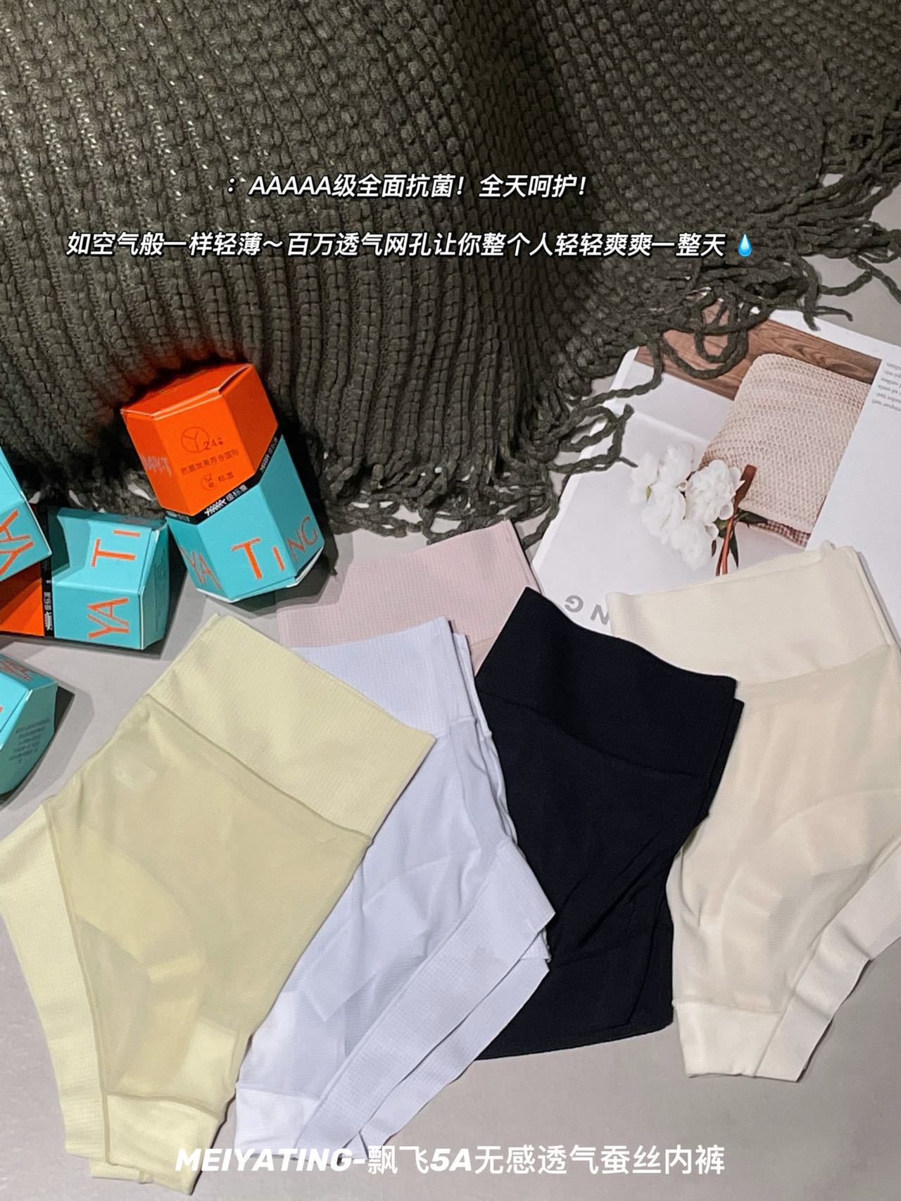 新款飘飞5A无感透气蚕丝内裤女盒装轻薄舒适抑菌底裆中高腰三角裤