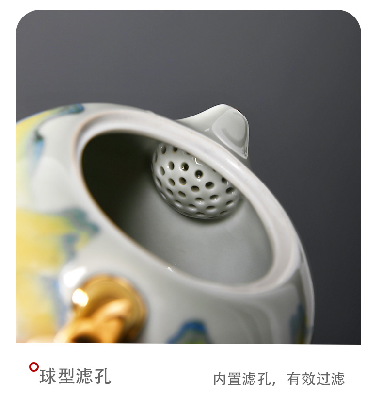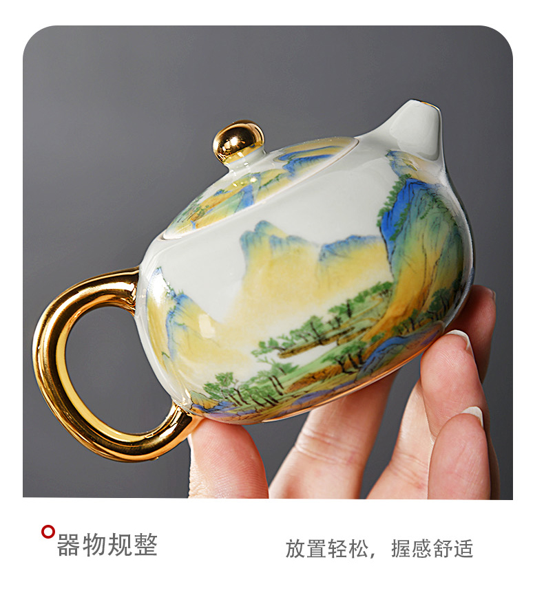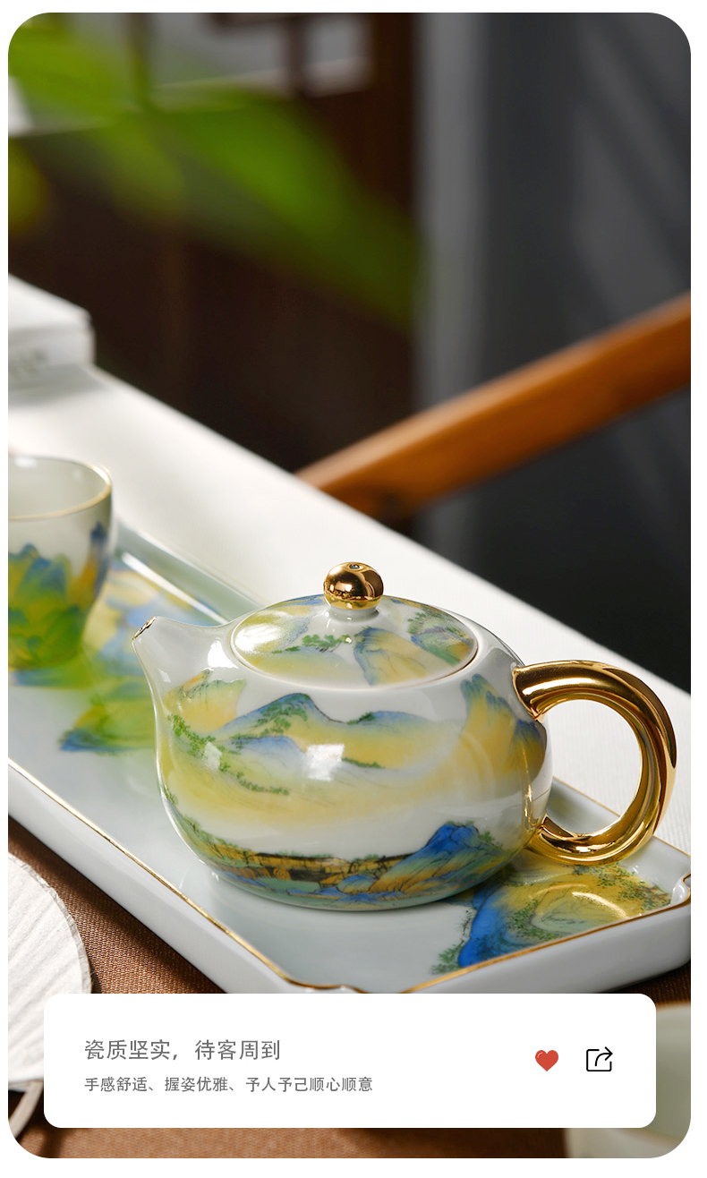 成艺锦上添花 釉下青花瓷景德镇陶瓷茶具套装整套家用提梁壶茶壶茶杯锦上添花古道壶7入