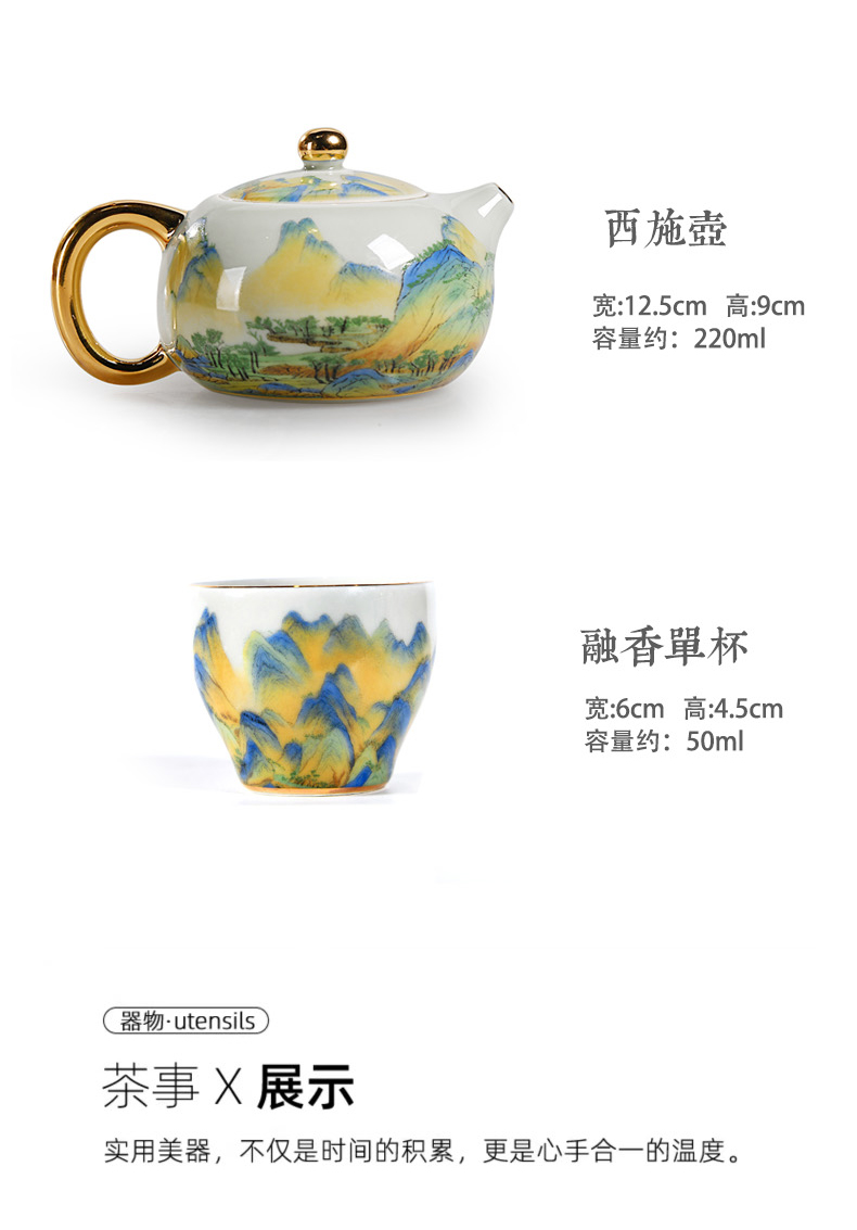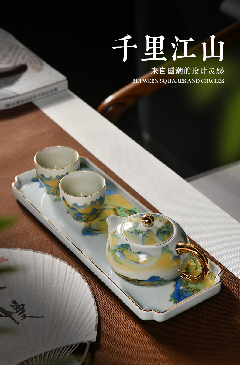 成艺-千里江山方型干泡盘4入