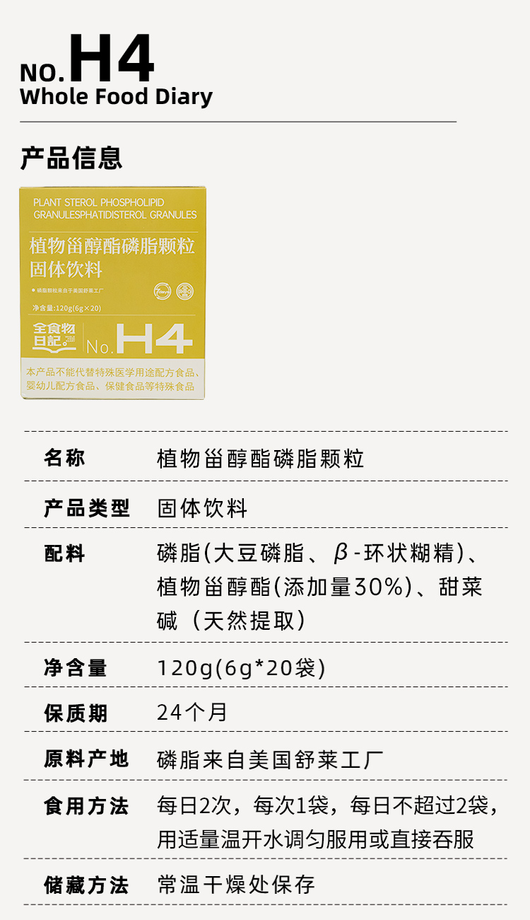 全食物日记 H4植物甾醇脂磷脂颗粒120g