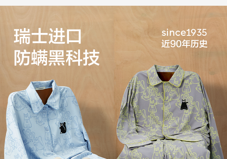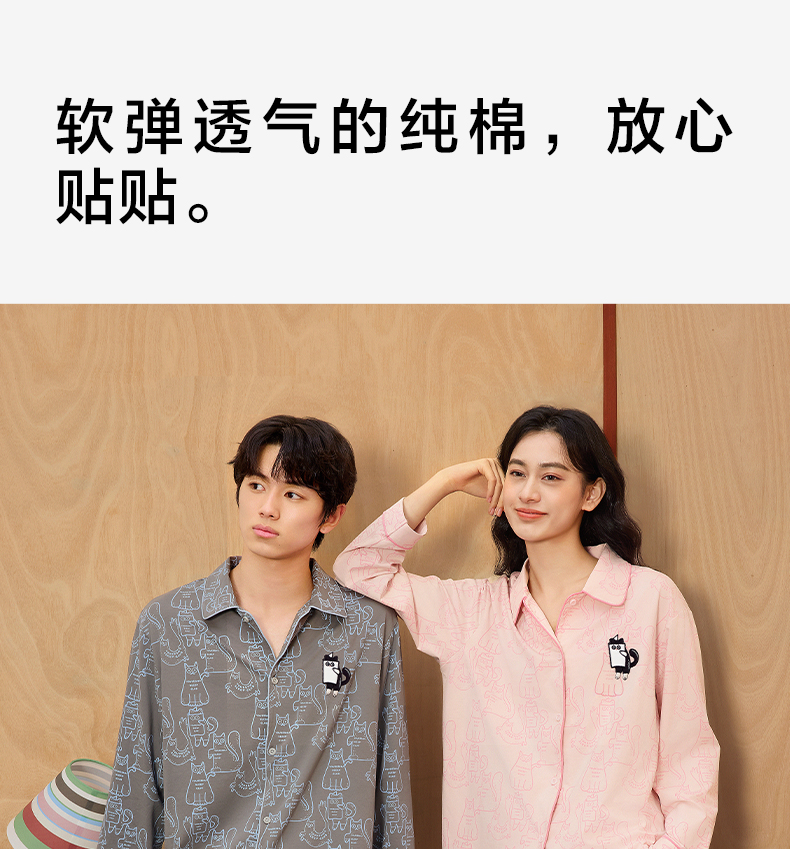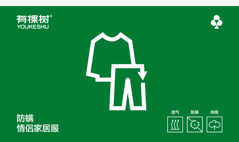 有棵树纯棉防螨7A抗菌情侣家居服-S0042