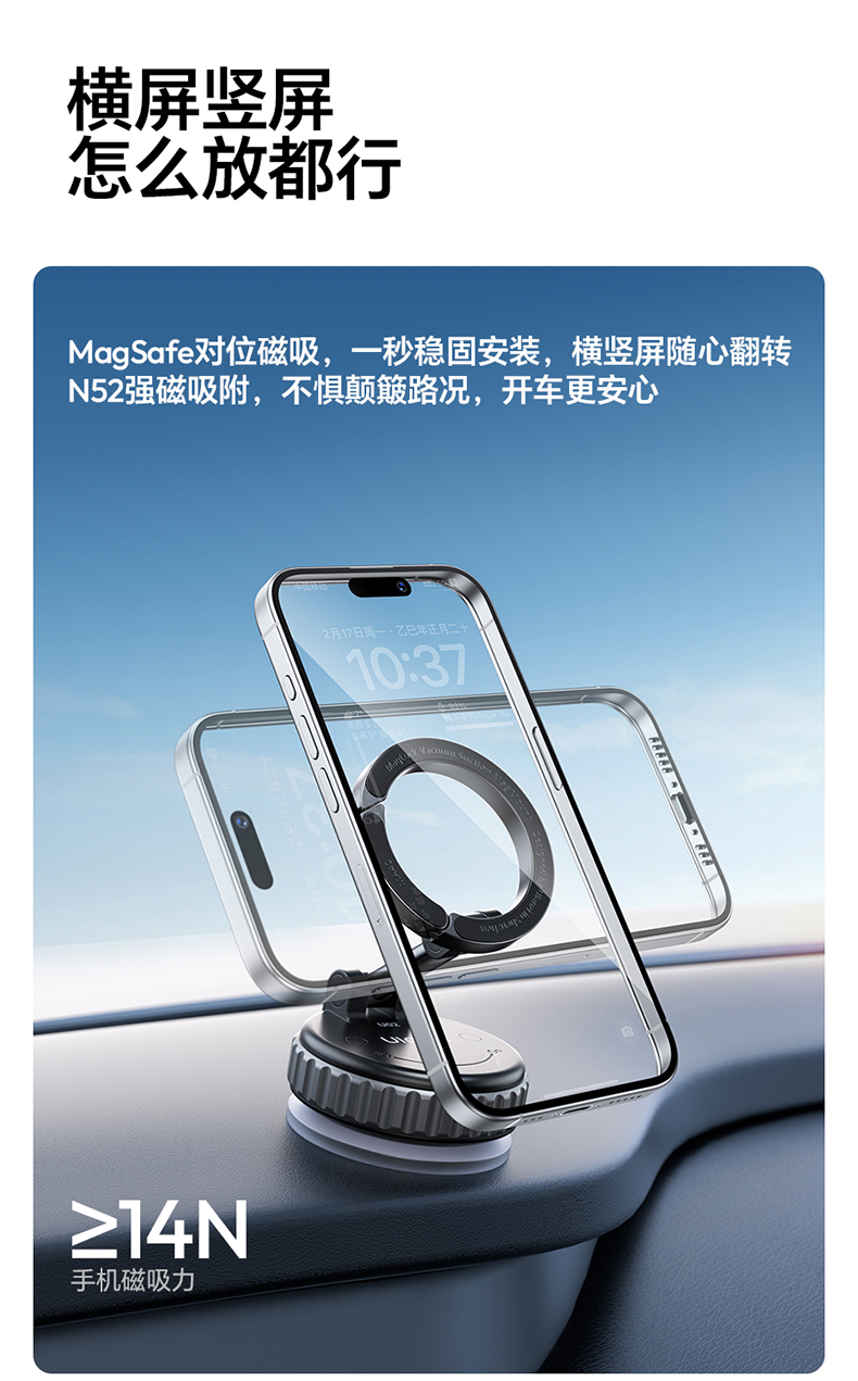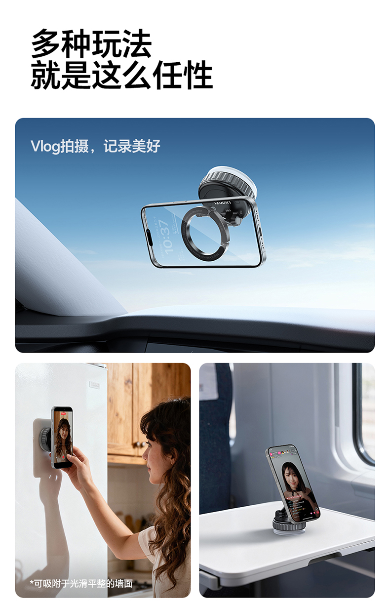 Ulanzi优篮子 MA40真空吸盘磁吸手机支架2025新款桌面车载便携折叠适用苹果magsafe拍摄自拍神器固定支撑架