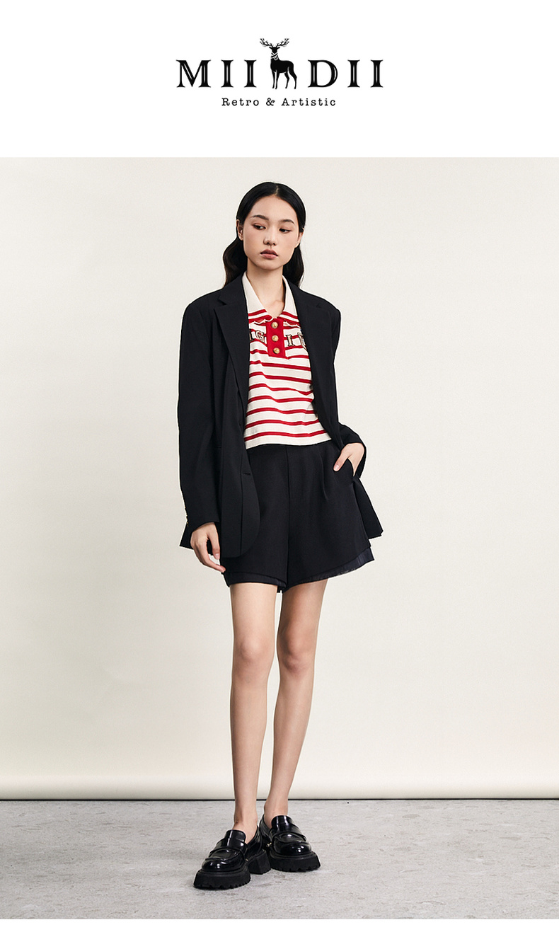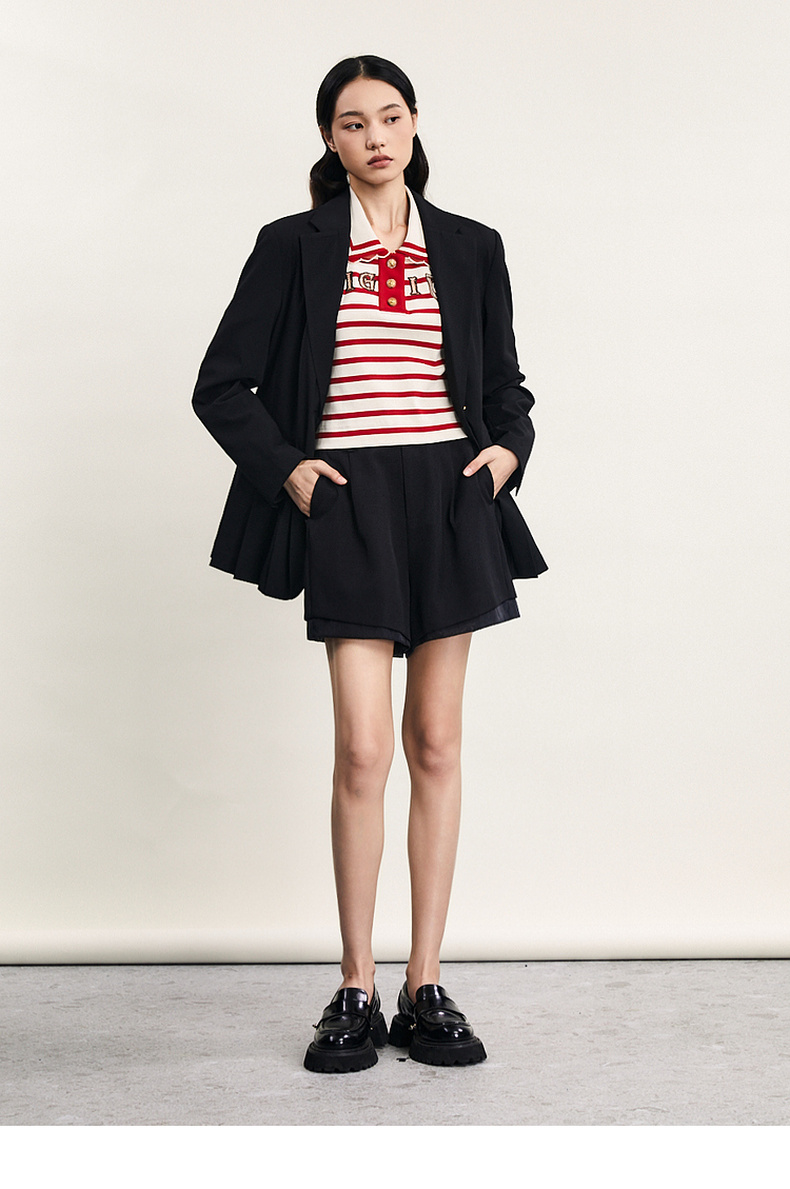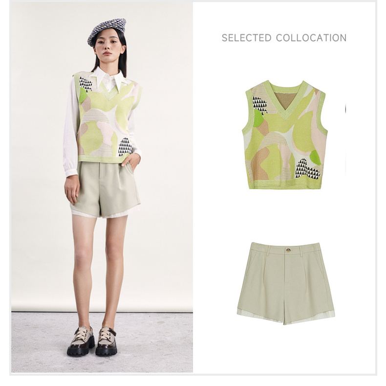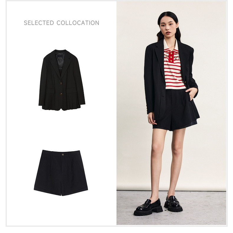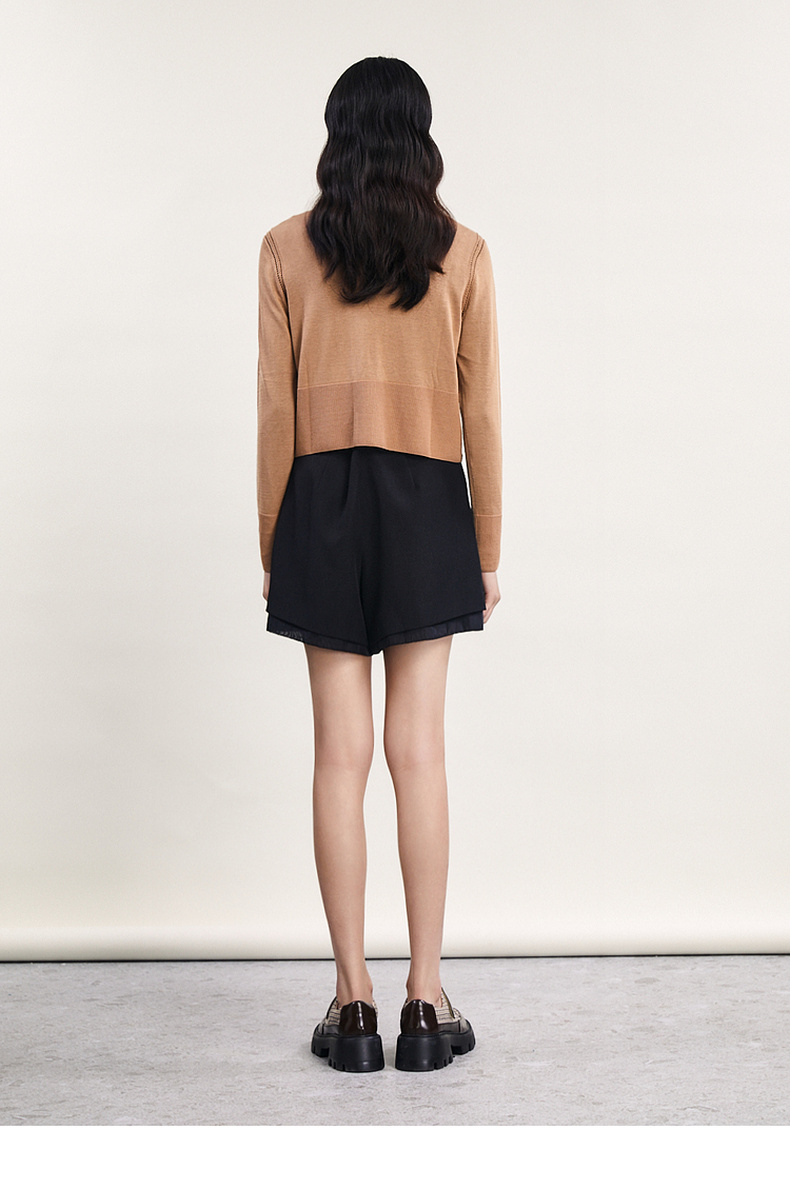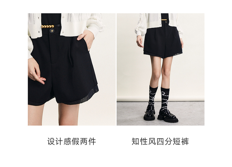 谜底A型直筒裤女2024春季新款简约时尚百搭休闲拼接短裤241MK0072