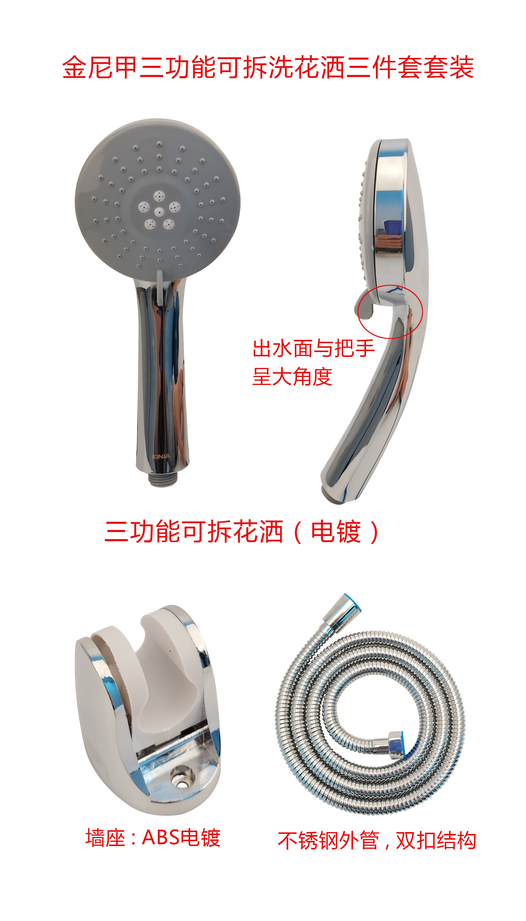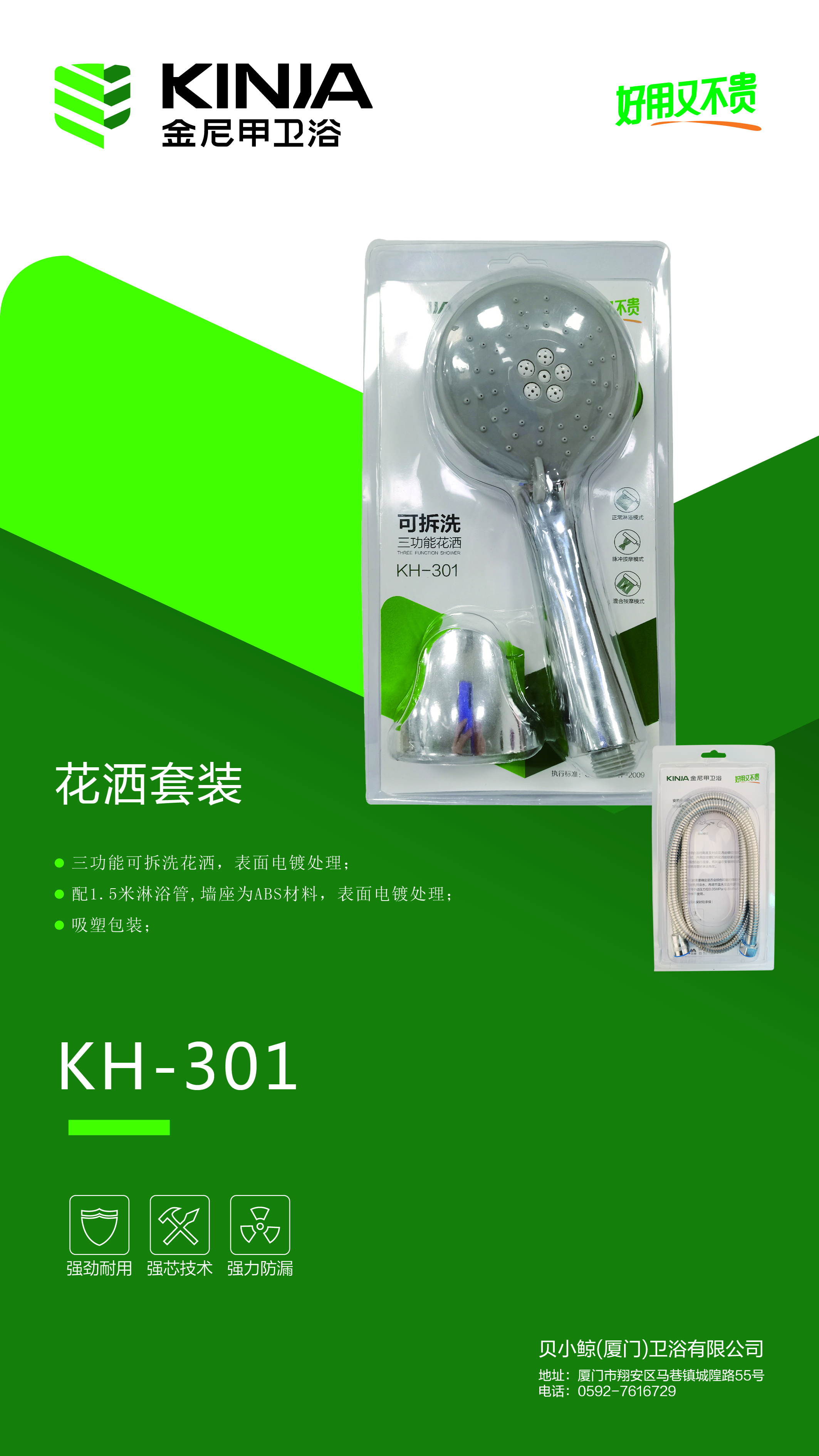 花洒套装/KH-301/三功能可拆洗/吸塑装