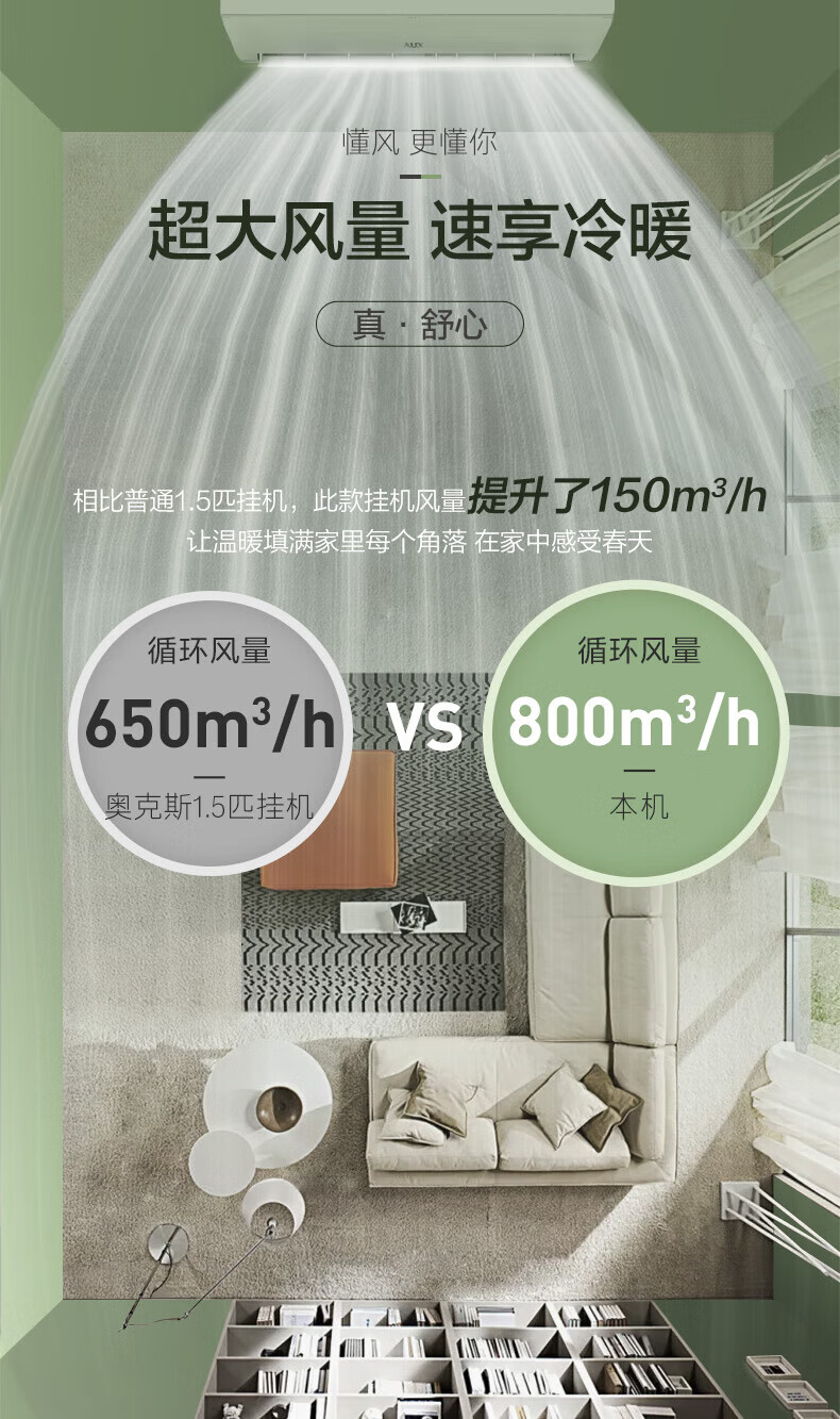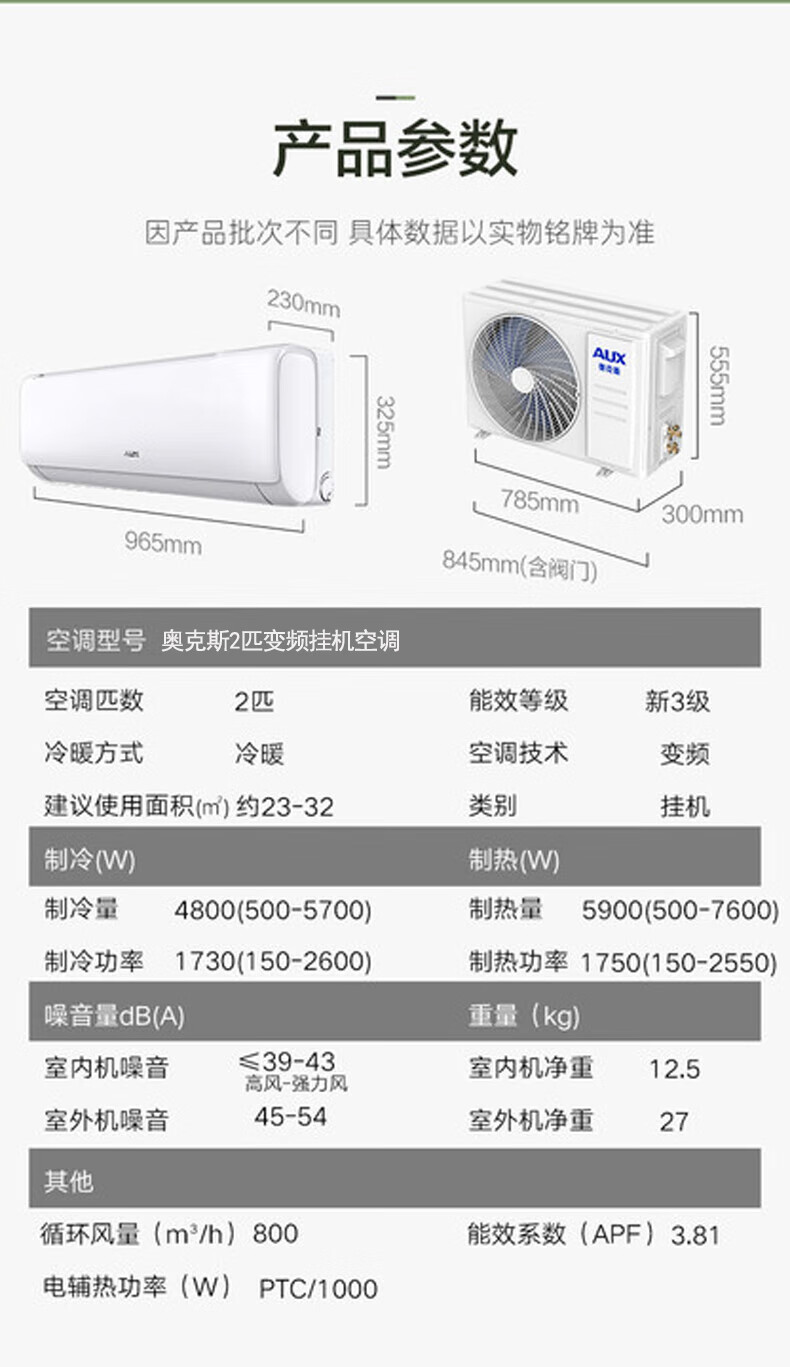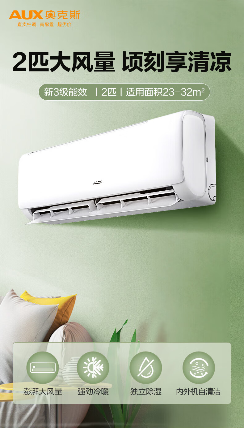 奥克斯空调2匹大挂机 壁挂式客厅大风量空调KFR-48GW/BpR3PQK16(B3)