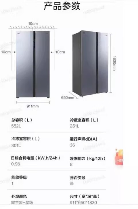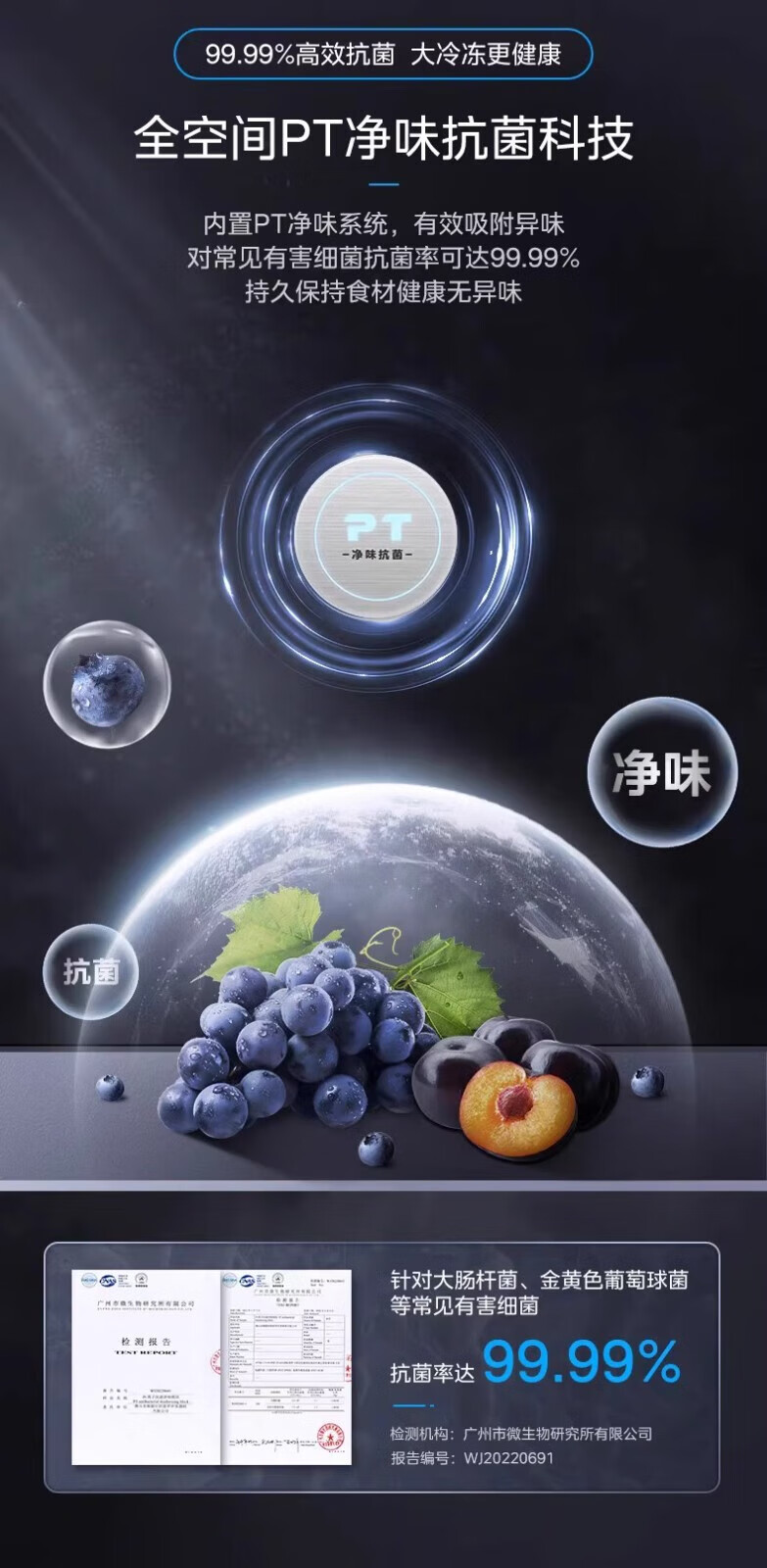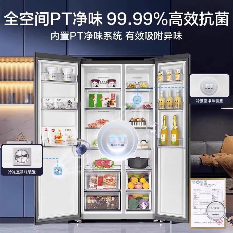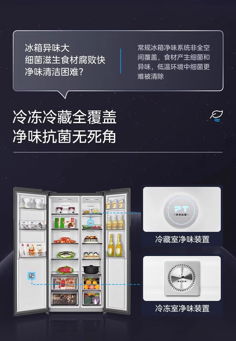 美的/Midea 双开门家用冰箱大冷冻对开风冷无霜一级变频BCD-552WKGPZM(Q)【品牌家电 BCD-552WKGPZM(Q)墨兰灰-星烁