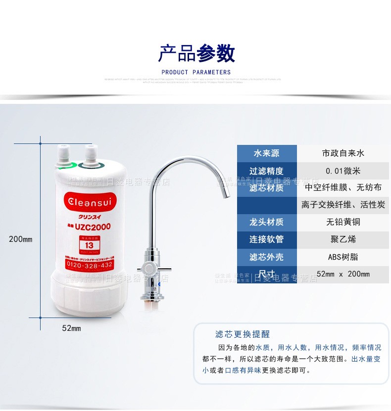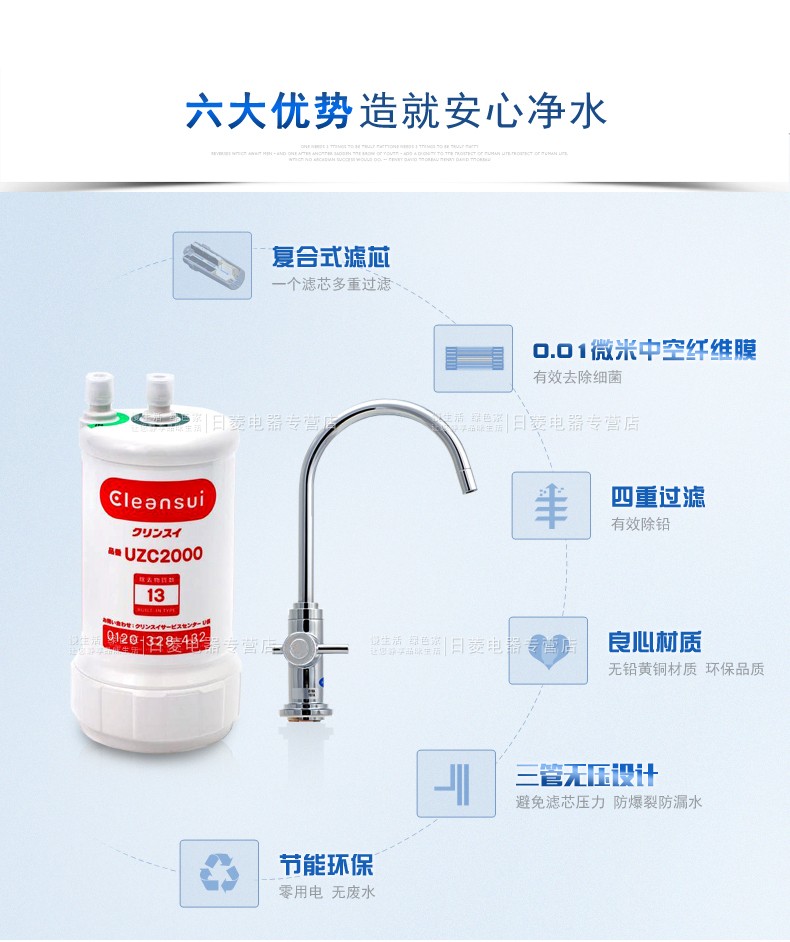 【盛元新生活】日本三菱可菱水(CLEANSUI)家用净水器厨房过滤器台下超滤直饮净水机A501升级款 U-A501ZC+标配龙头A1
