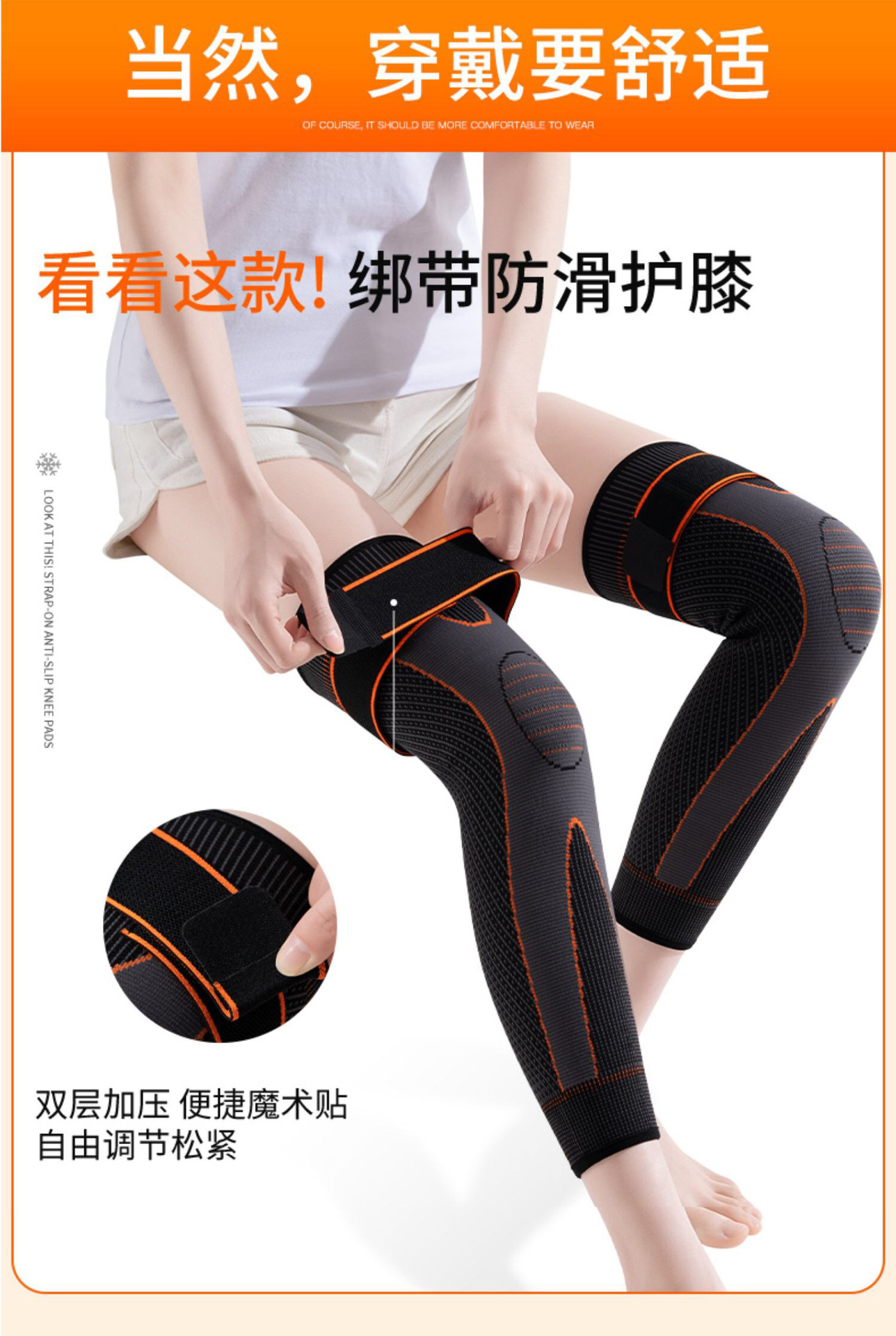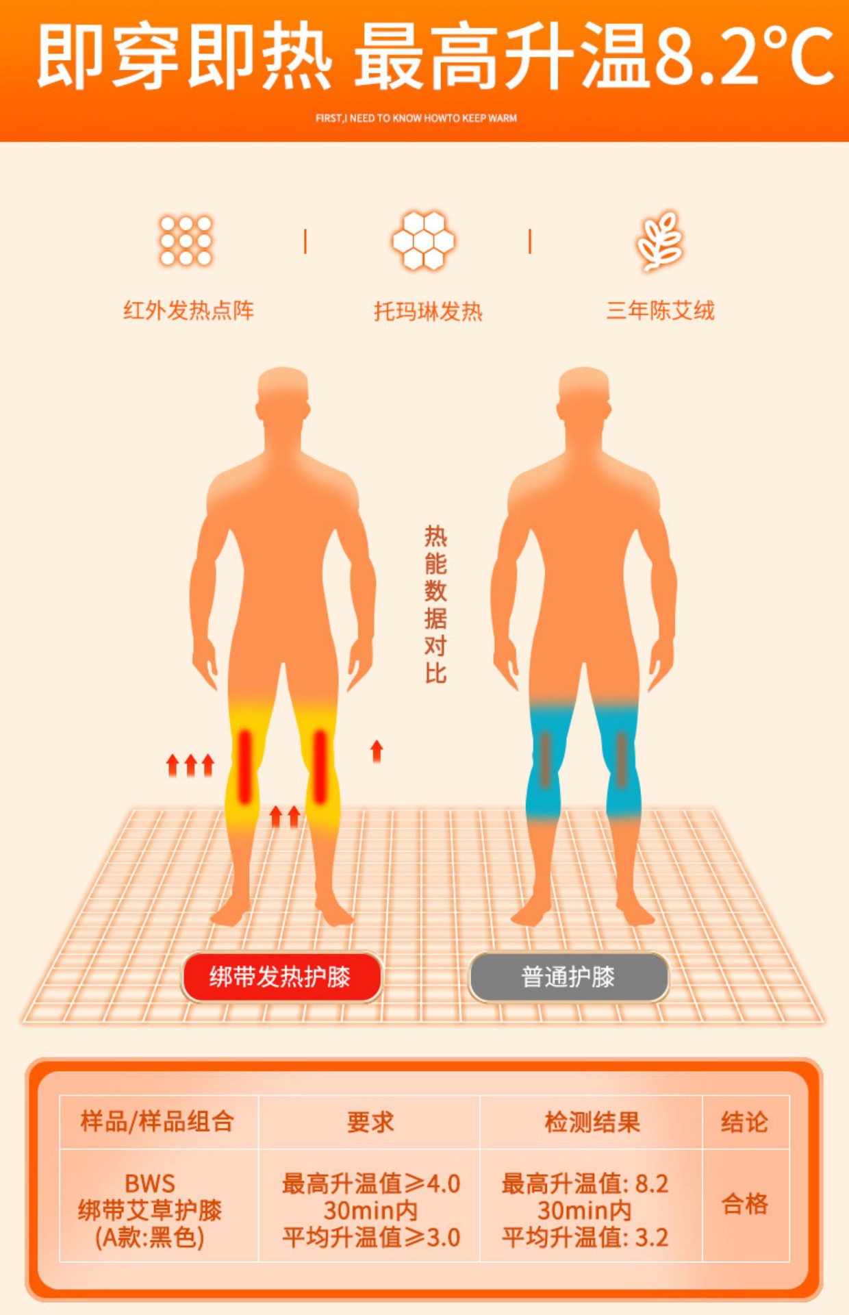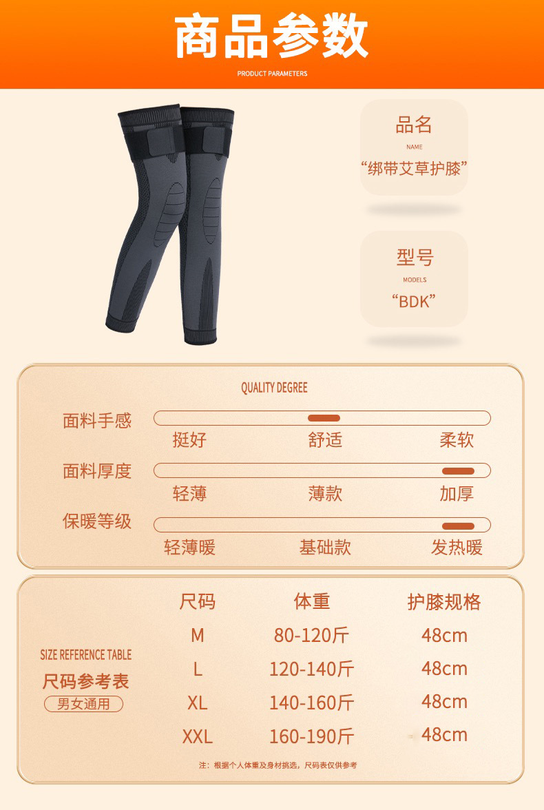 艾草发热加长绑带运动护膝保暖老寒腿男女士艾绒草发热秋冬跑步加厚护腿套