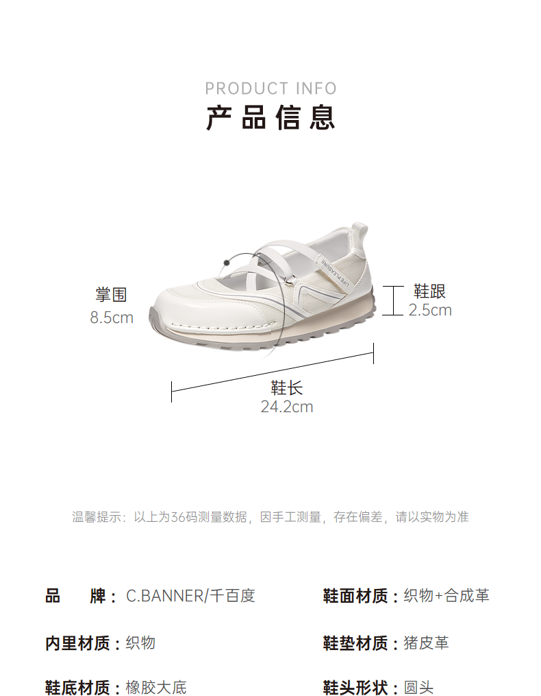 千百度时尚芭蕾舞休闲鞋女秋季厚底玛丽珍小白鞋运动鞋A24420191