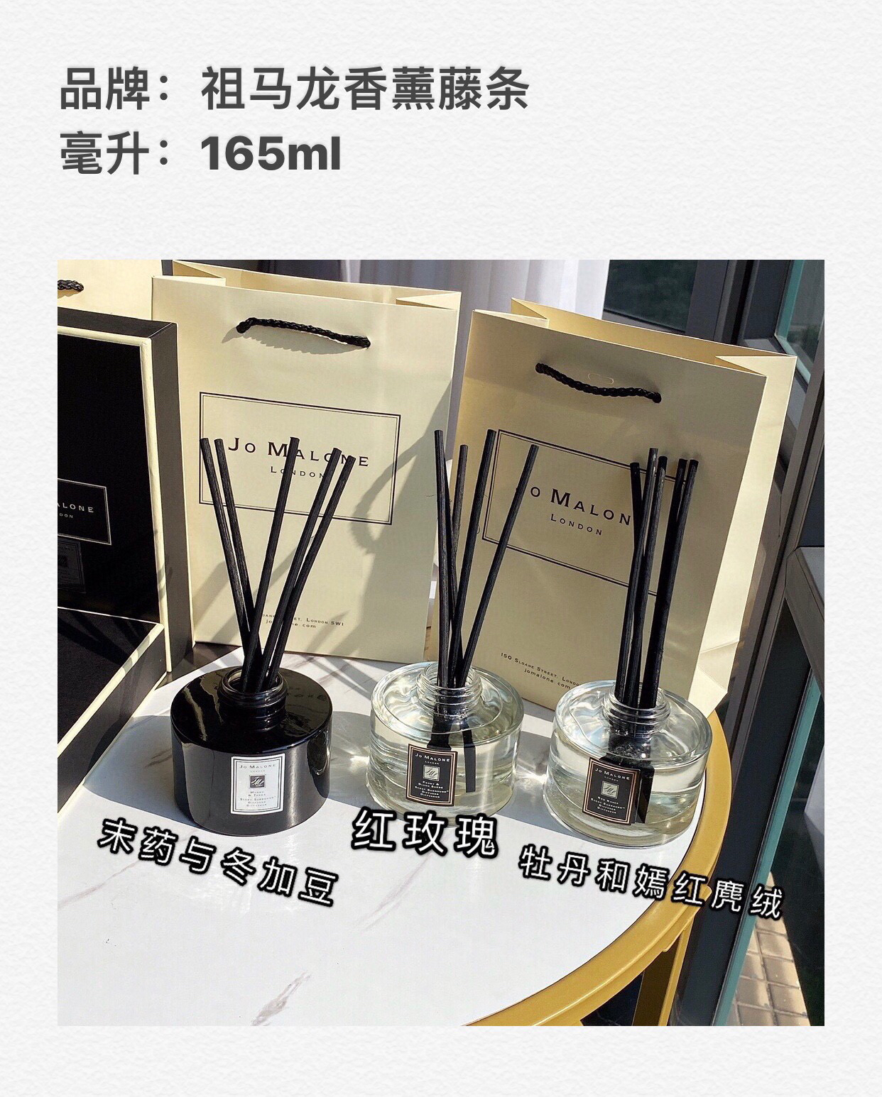 💰199包邮,原单渠道货!生活需要仪式感,祖马龙的藤条香薰真的是家中必备!马卡龙在香氛届名气就不用说太多了,祖马龙在西方颇有美誉,香水几乎都以原料名称来命名,香水追求的是主打成分,本身的味道不仅单喷让人喜爱,混搭还能创造出自己的味道,香薰是将含有微氧素的天然植物精油通过特制的恒温变化得以发挥,不仅能够产生充足的新鲜氧气,而且释放出大量的臭氧,芬多精负离子和植物芳香分子,使得我们本来污染的环境会变得清新而健康。今天给大家推荐的这款藤条香薰作为家居香薰系列更是受到各种品味女士的喜爱,正品用的全是进口且经过质检的香精,最重要的是进口香精调出来的味道很纯正!香味: 1⃣️红玫瑰2⃣️ 牡丹和嫣红麂绒3⃣️ 末药与冬加豆限量版* 165ml