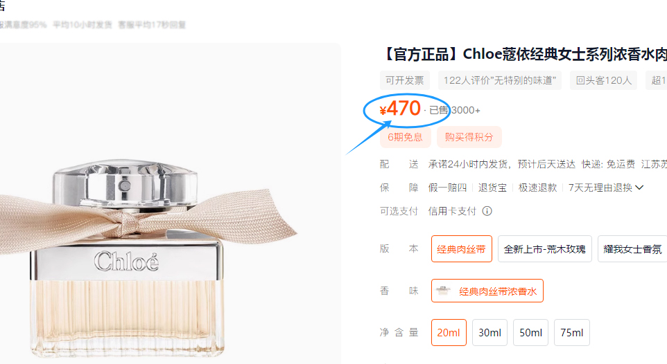 【6.28王炸割肉价】Chloe蔻依经典女士系列浓香水肉丝带香水 20ml