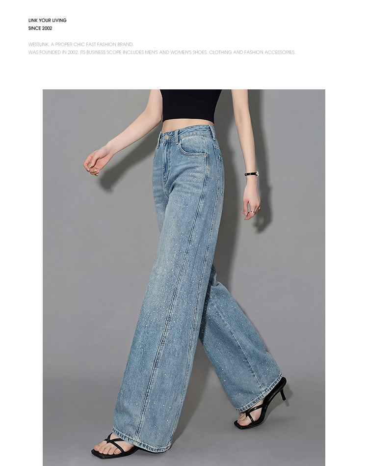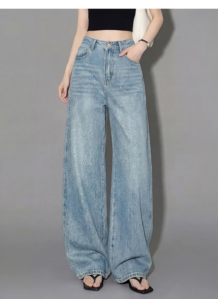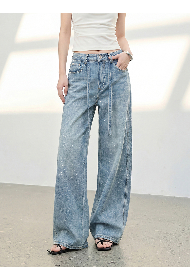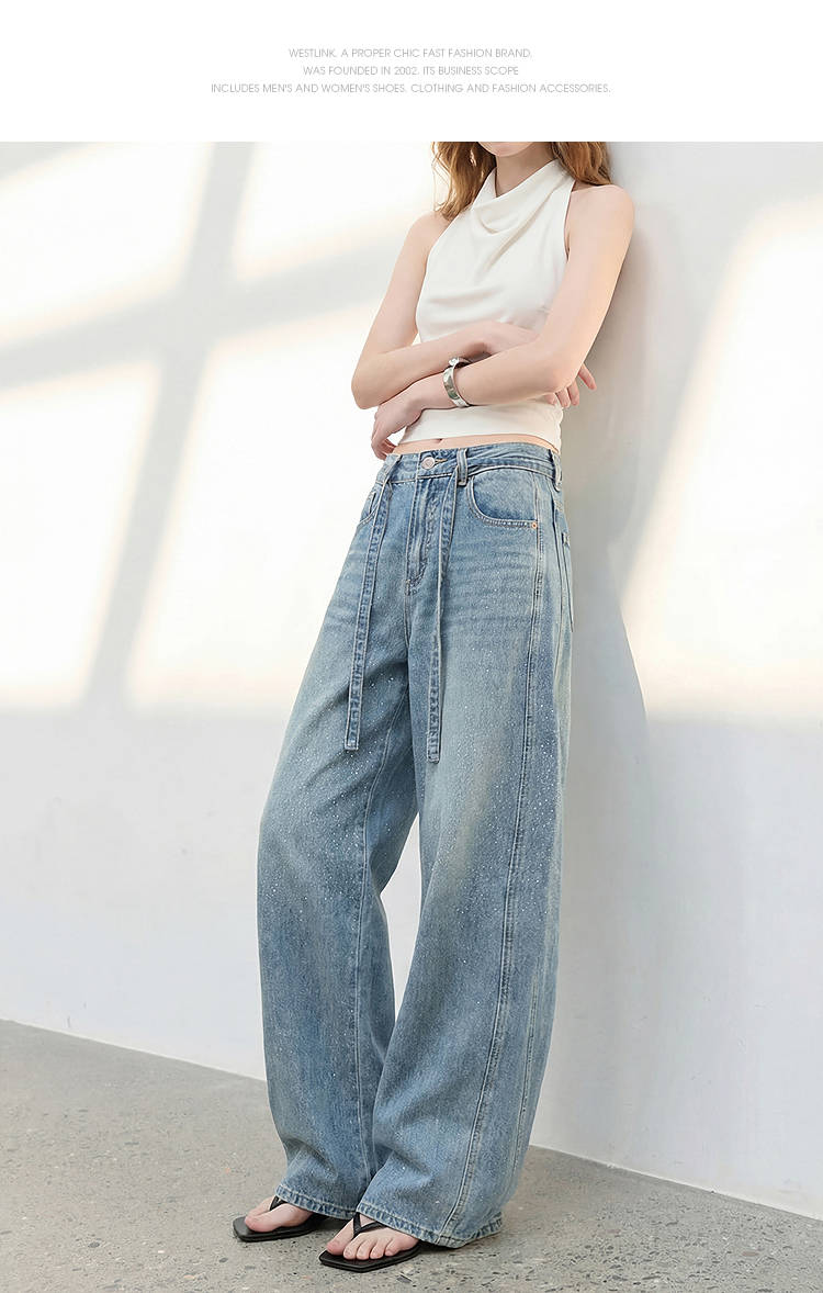 西遇高街复古2026春新款女水洗高腰显瘦垂感阔腿裤直筒牛仔裤H0060234