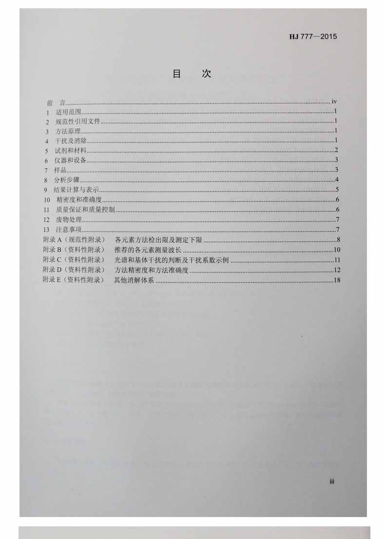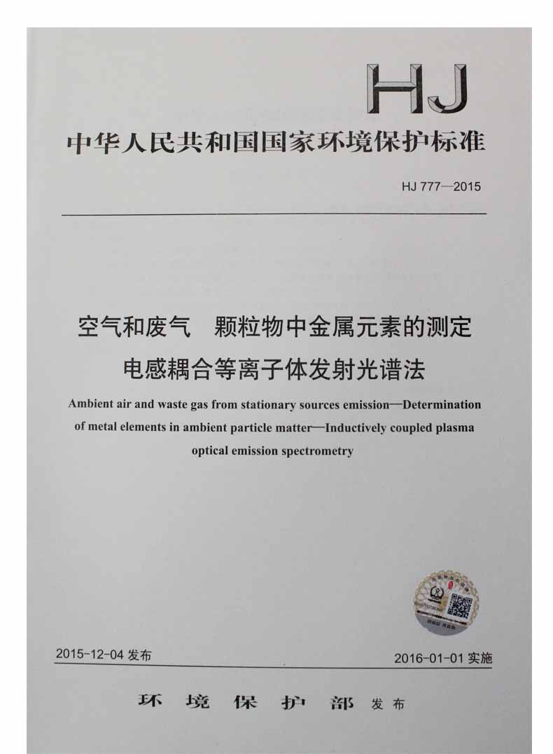 HJ 777-2015 空气和废气 颗粒物中金属元素的测定 电感耦合等离子体发射光谱法 国家标准国标GB 中国环境135111442