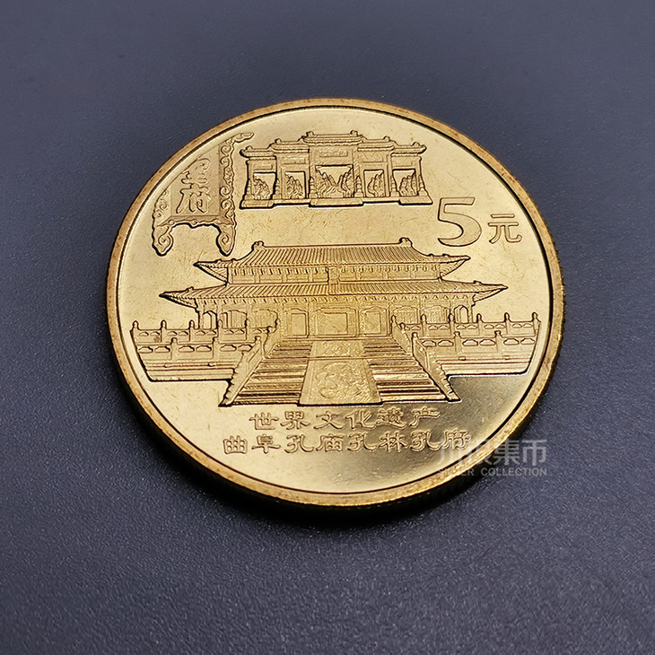 3:孔庙孔府孔林纪念币,面值5元,发行量800万枚,发行日期2003年;
