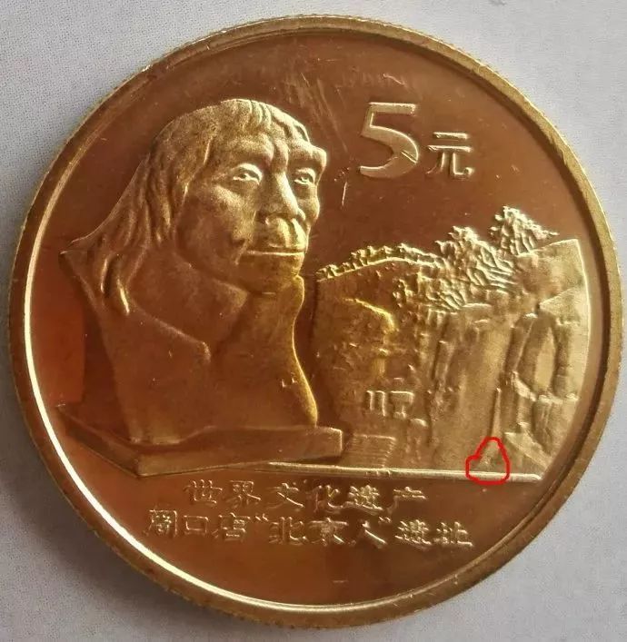5:周口店北京人遗址纪念币,面值5元,发行量600万枚,发行日期2004年;