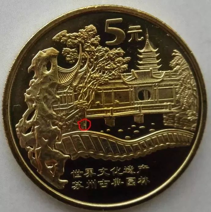 6:苏州古典园林纪念币,面值5元,发行量600万枚,发行日期2004年;