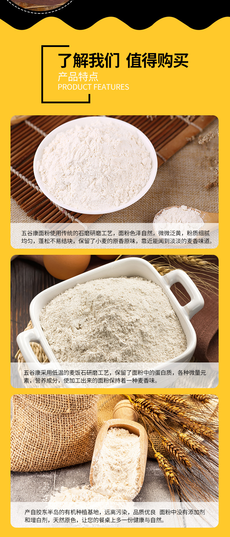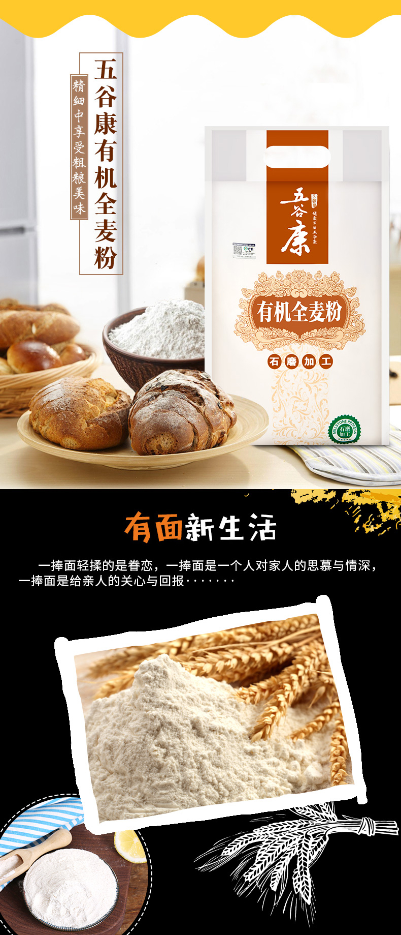 有机全麦粉 五谷康 家用中高筋石磨面粉 山东特产冬小麦粉支持自提