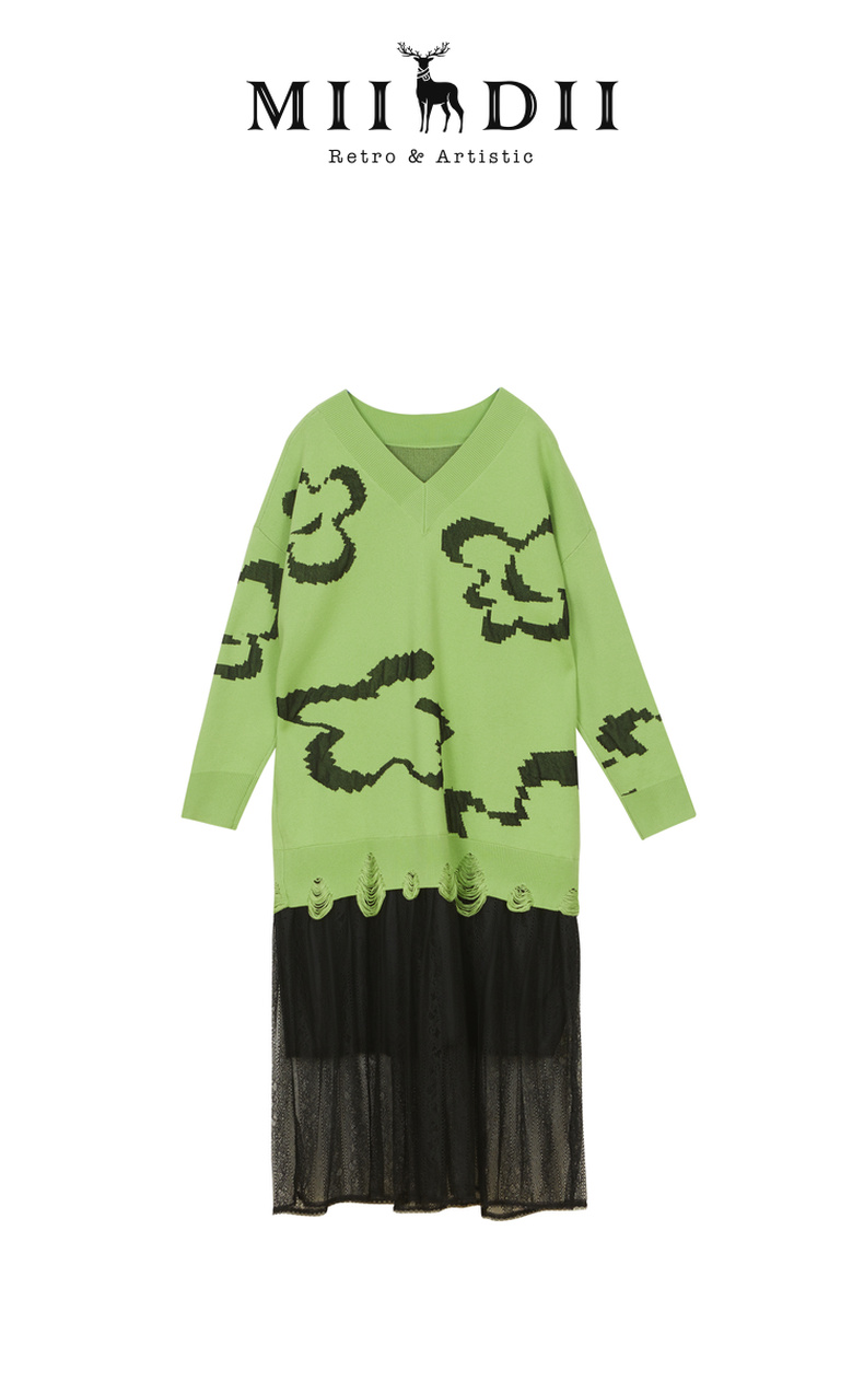 MIIDII谜底2022春新款简约时髦H型V领针织衫221MZ0320