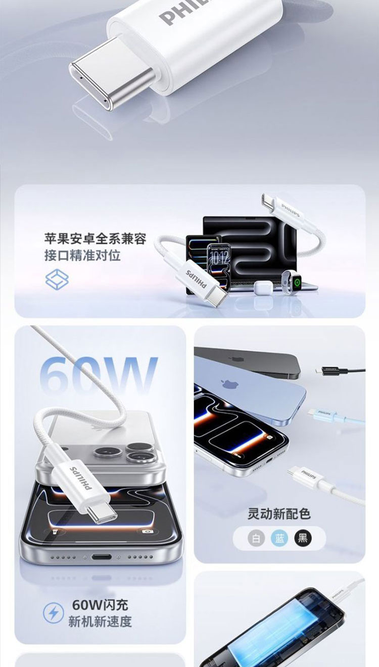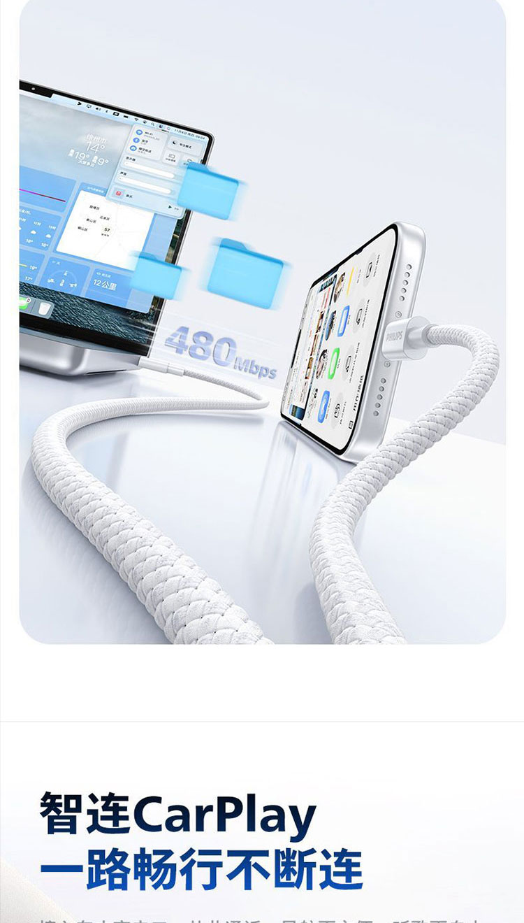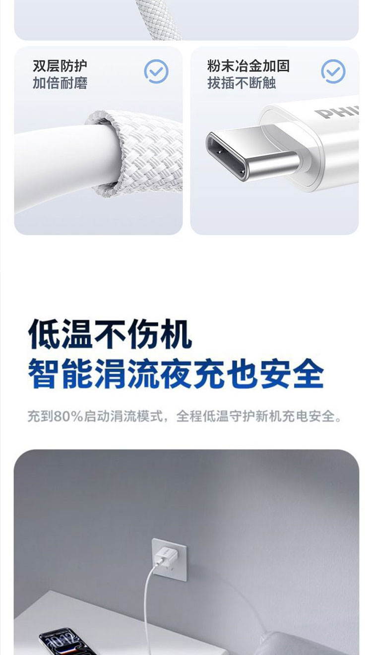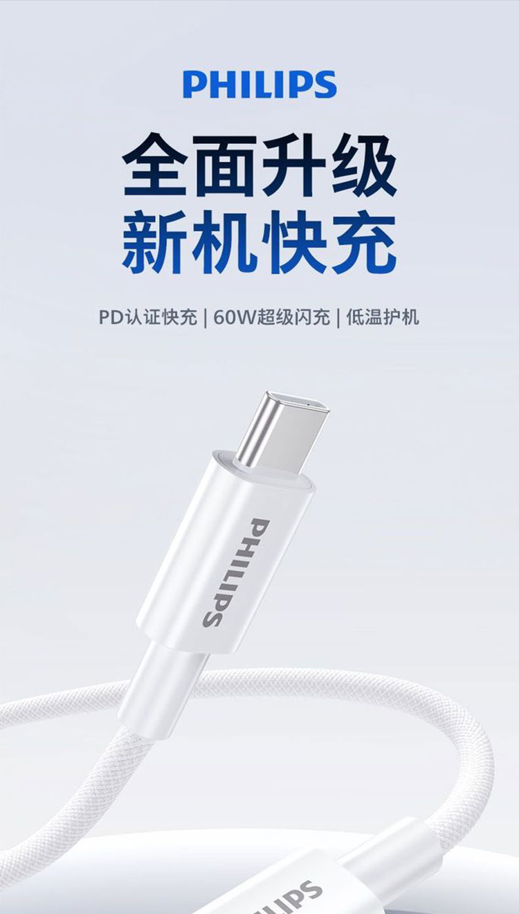 飞利浦PHILIPS数据线充电线传输线适用华为苹果安卓平板笔记本编织材质快充线1.2米C-C SWR1706/SWR1707