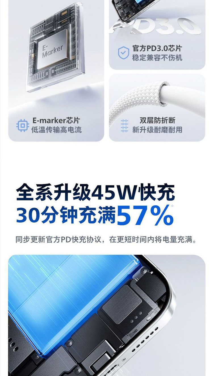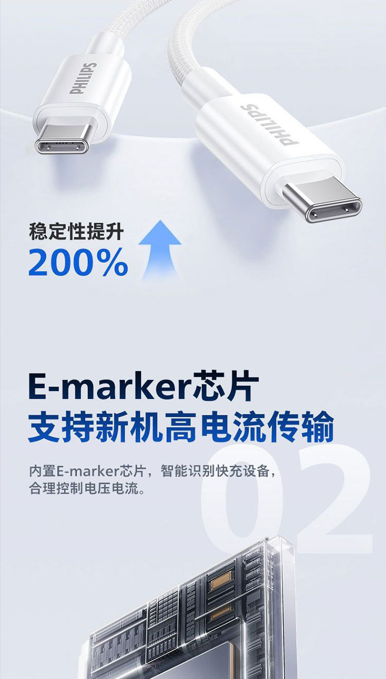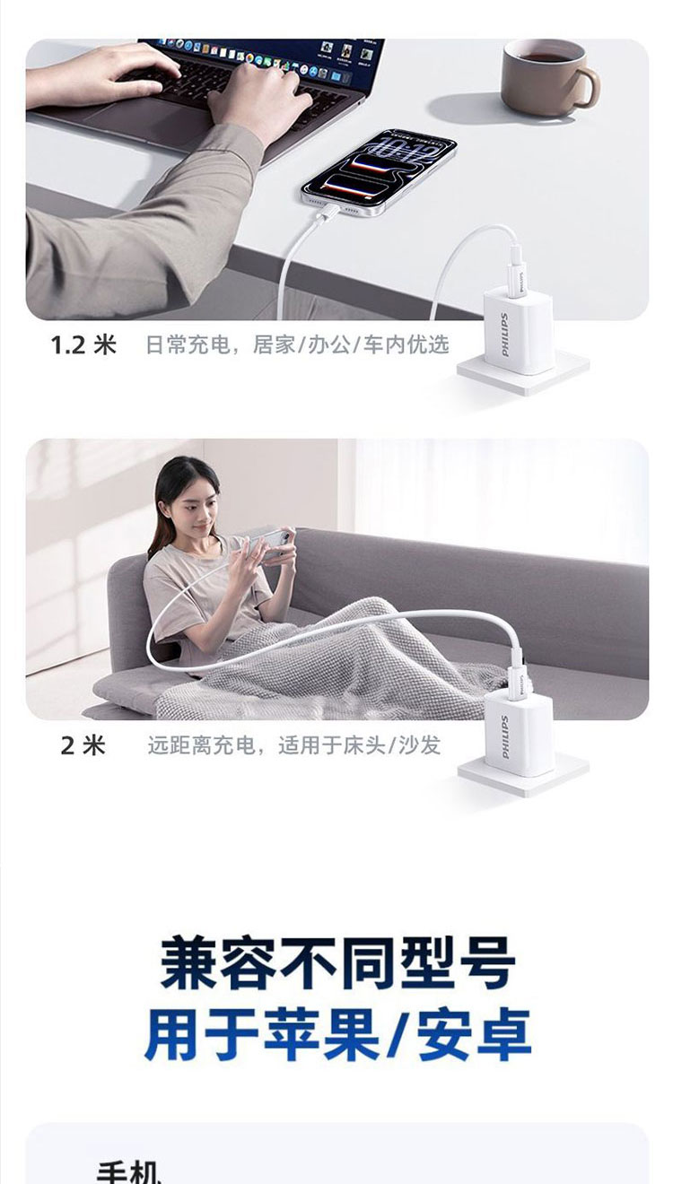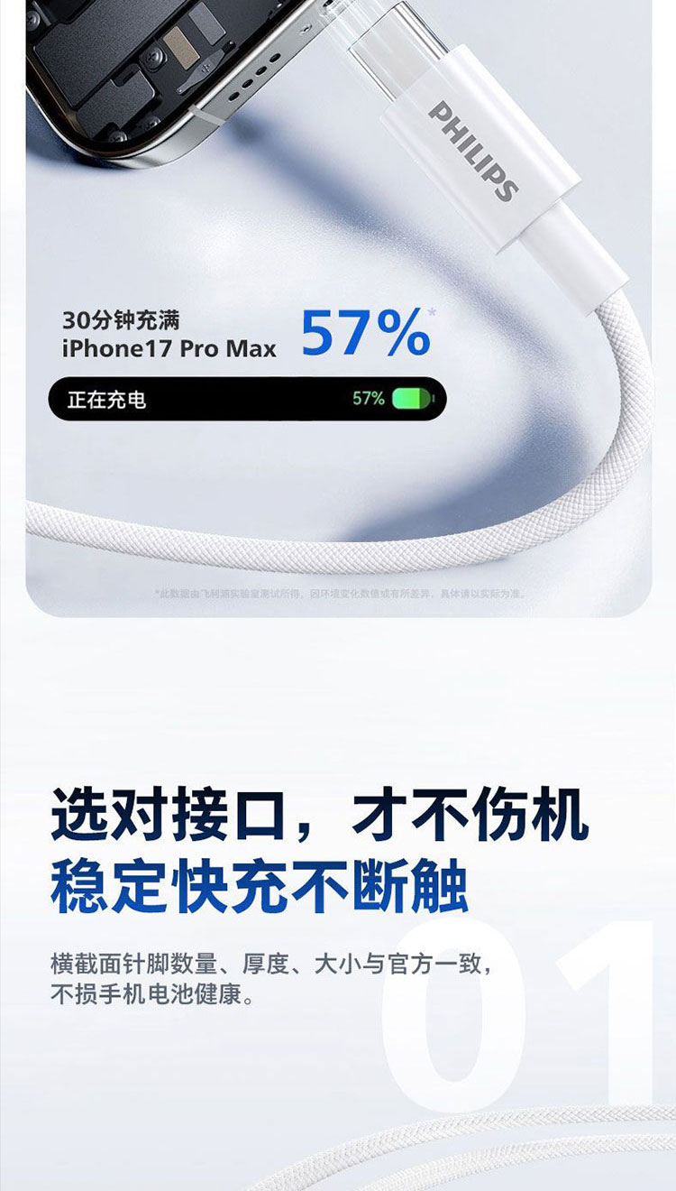 飞利浦PHILIPS数据线充电线传输线适用华为苹果安卓平板笔记本编织材质快充线1.2米C-C SWR1706/SWR1707