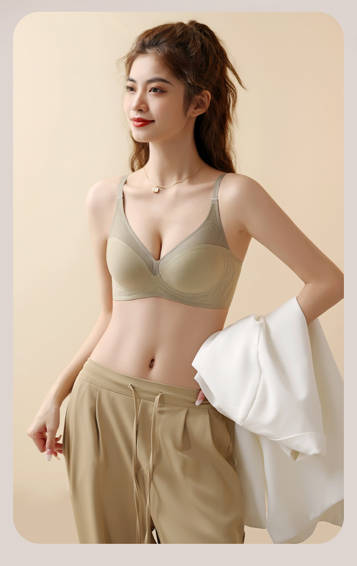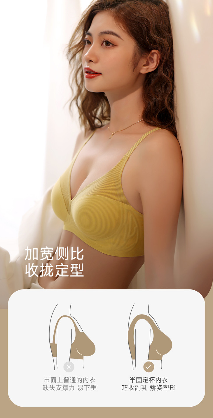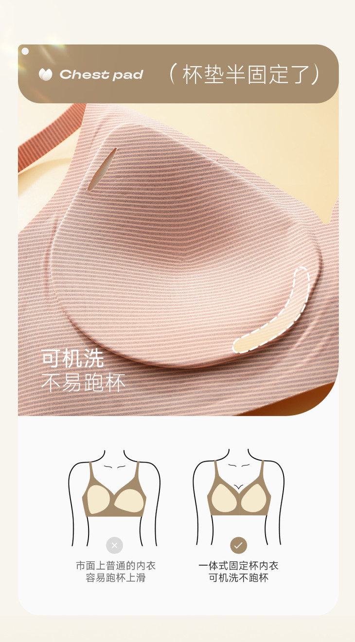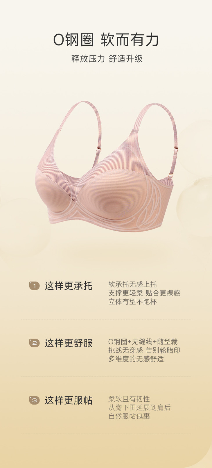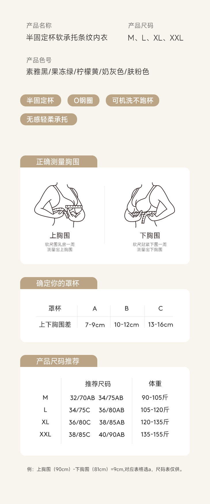 云感软承托半固定杯条纹bra,细肩带有扣款 【G】