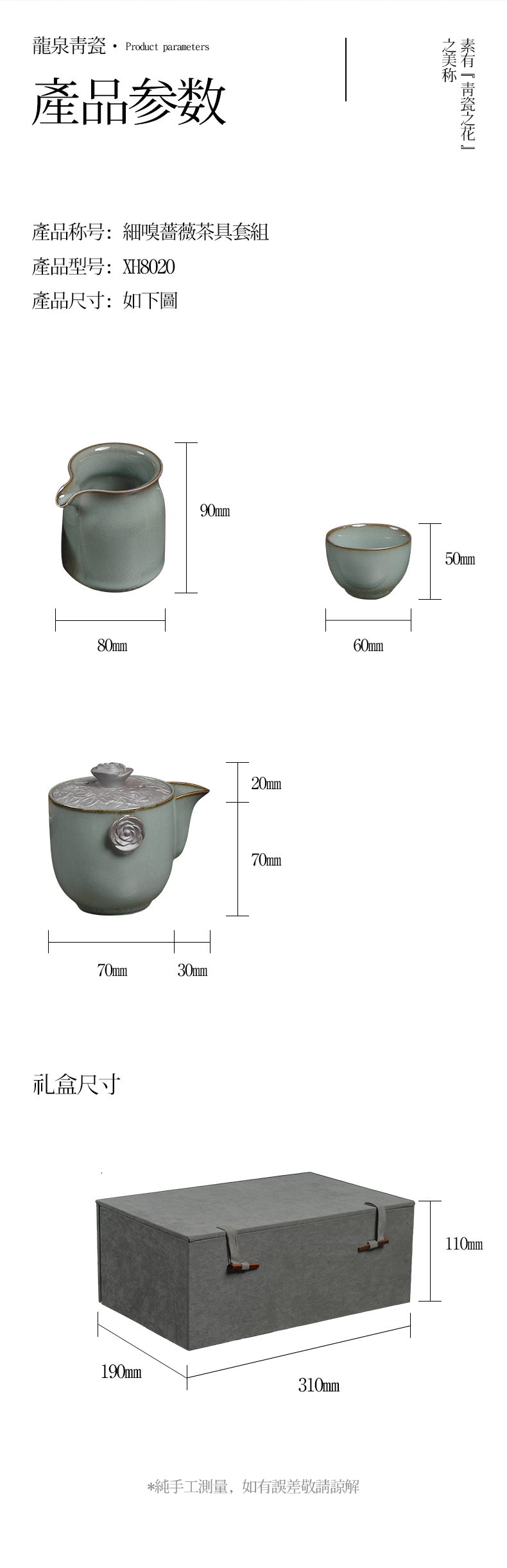 龙泉青瓷茶具 XH8020 细嗅蔷薇茶具套组