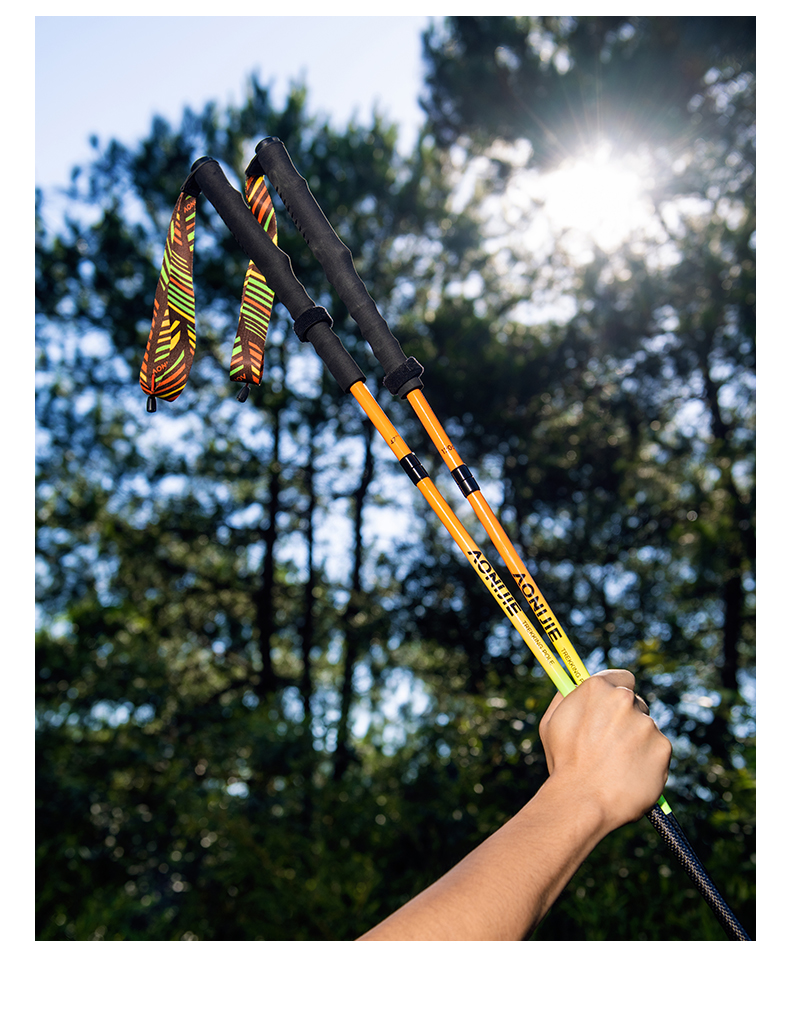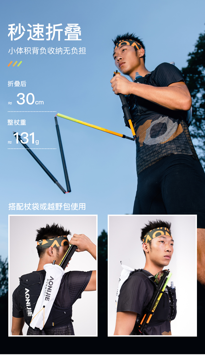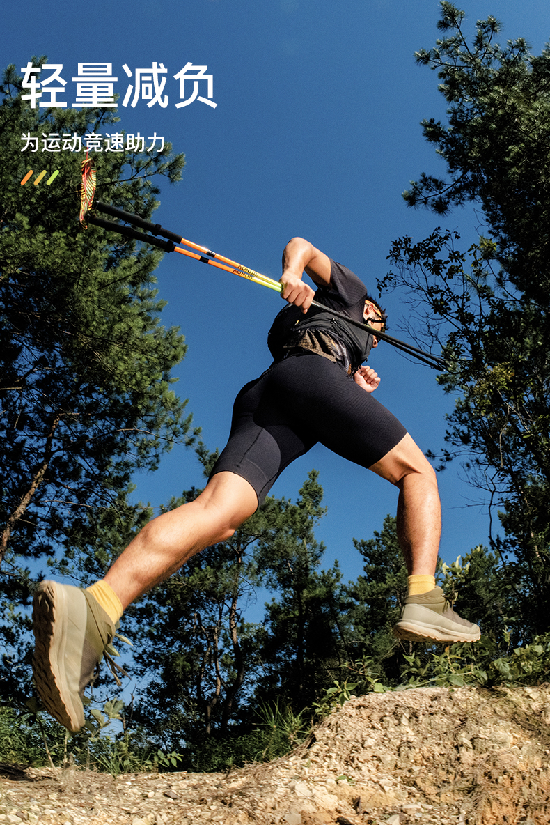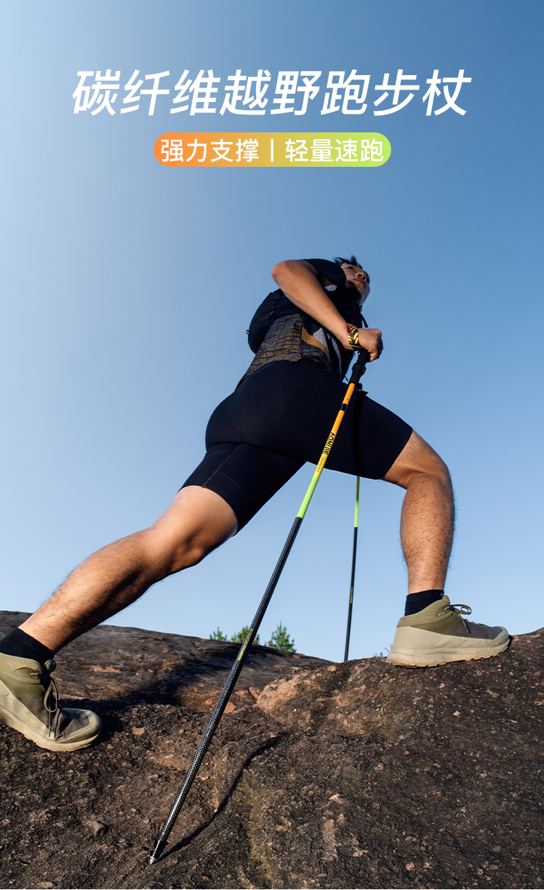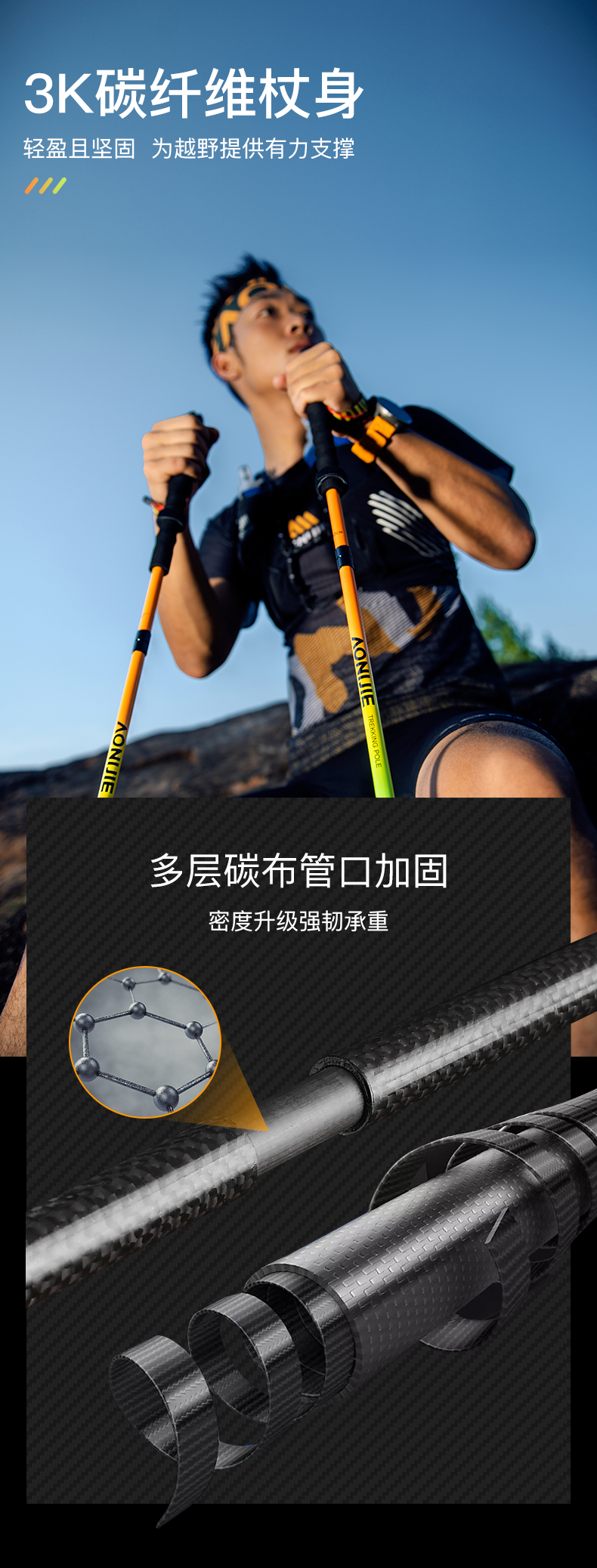 奥尼捷全碳素登山杖跑越野登山杖炫彩渐变色轻量化四折叠登山越野徒步杖E4204 单根装