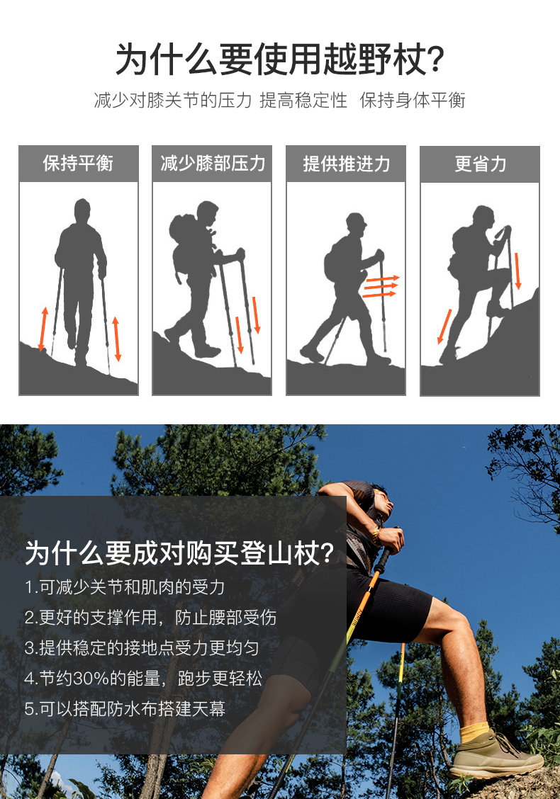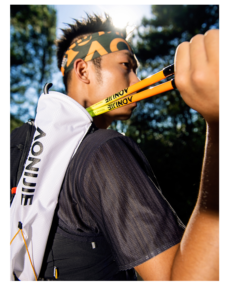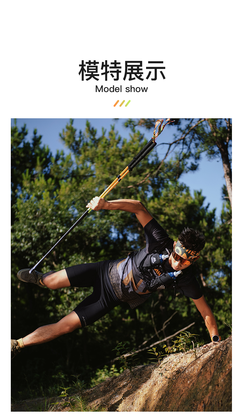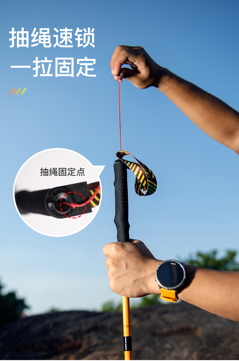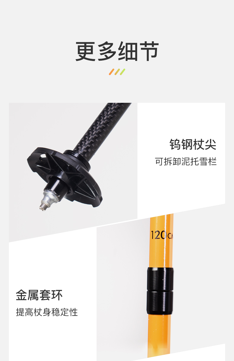 奥尼捷全碳素登山杖跑越野登山杖炫彩渐变色轻量化四折叠登山越野徒步杖E4204 单根装