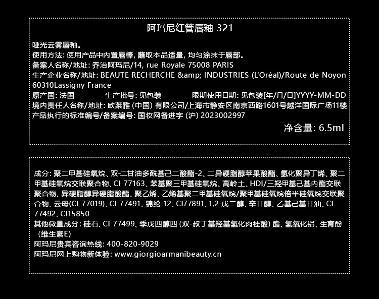 阿玛尼全新红管唇釉口红