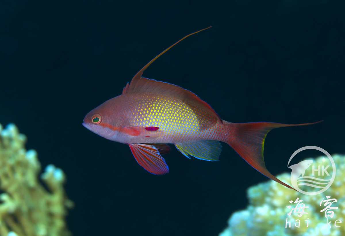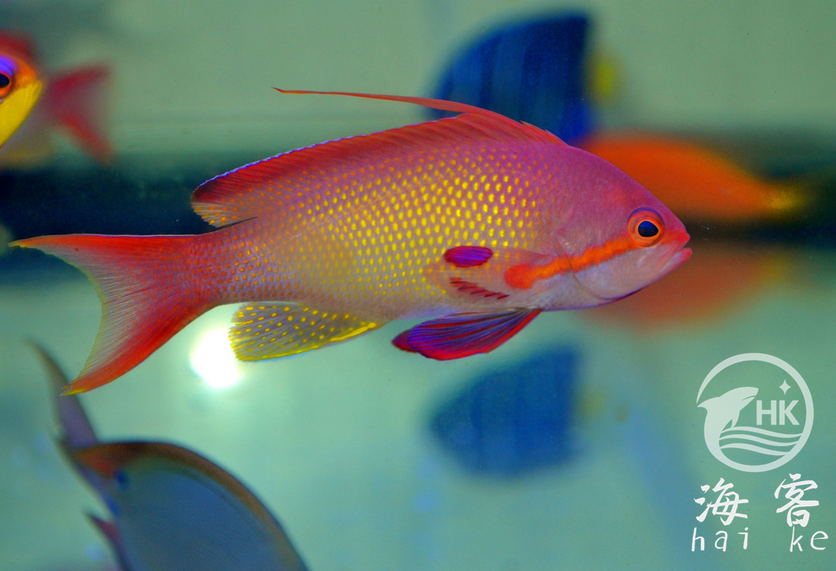 也叫燕尾鲈、金花鮨。雄鱼商品名金花宝石,雌鱼商品名马代蓝眼宝石。雄鱼倾向红色,而雌鱼偏向于橘色。在水族箱中表现积极,能帮助胆小的鱼尽快适应水族箱生活。