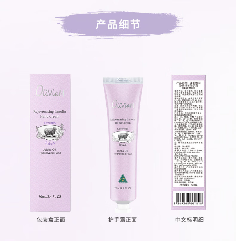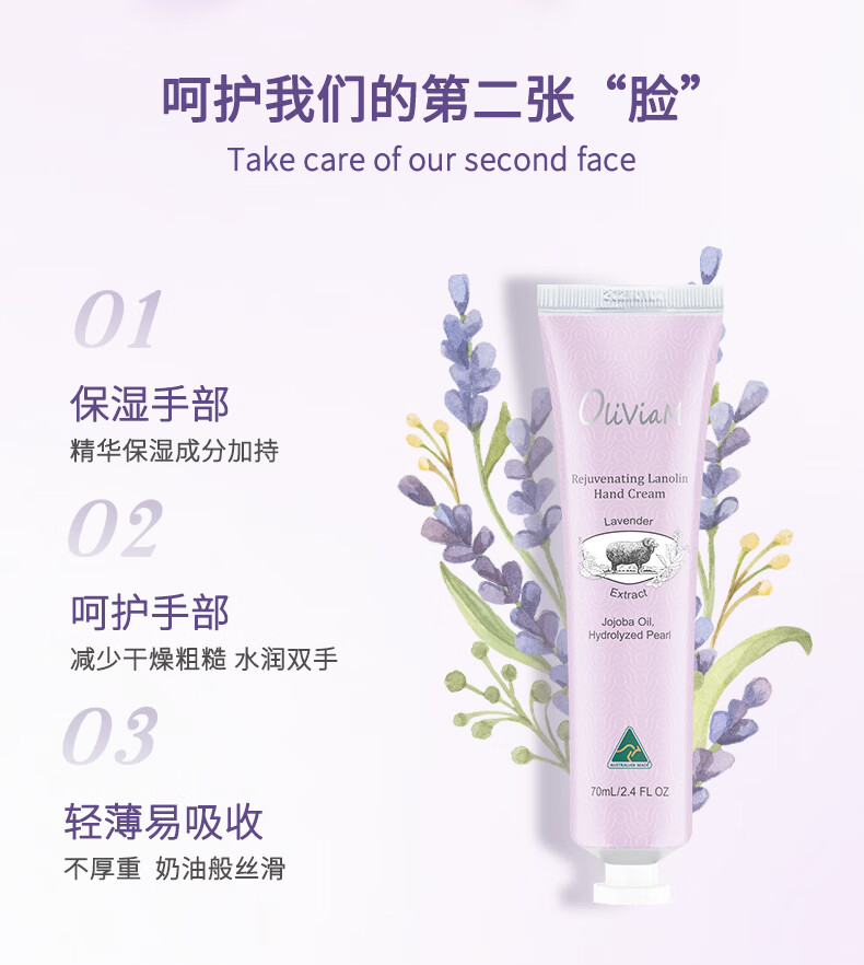 澳莉维亚 沁润绵羊油手霜(薰衣草味)70ml