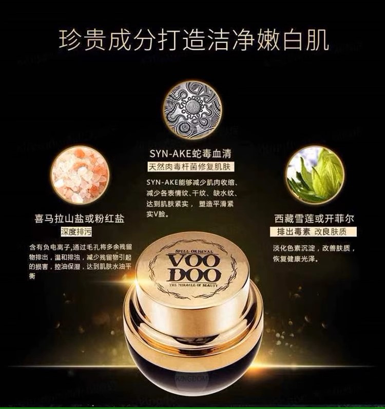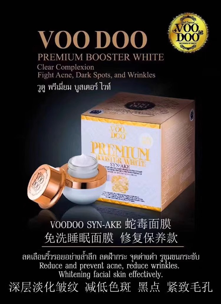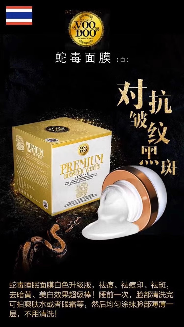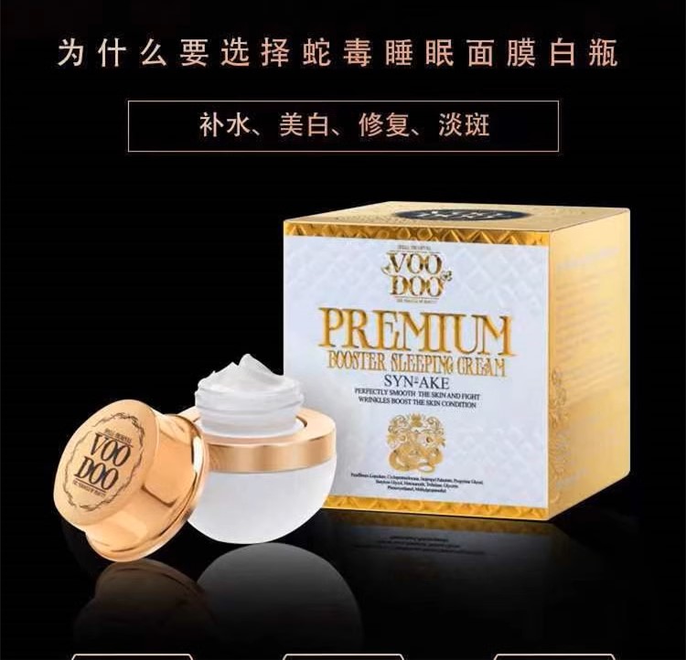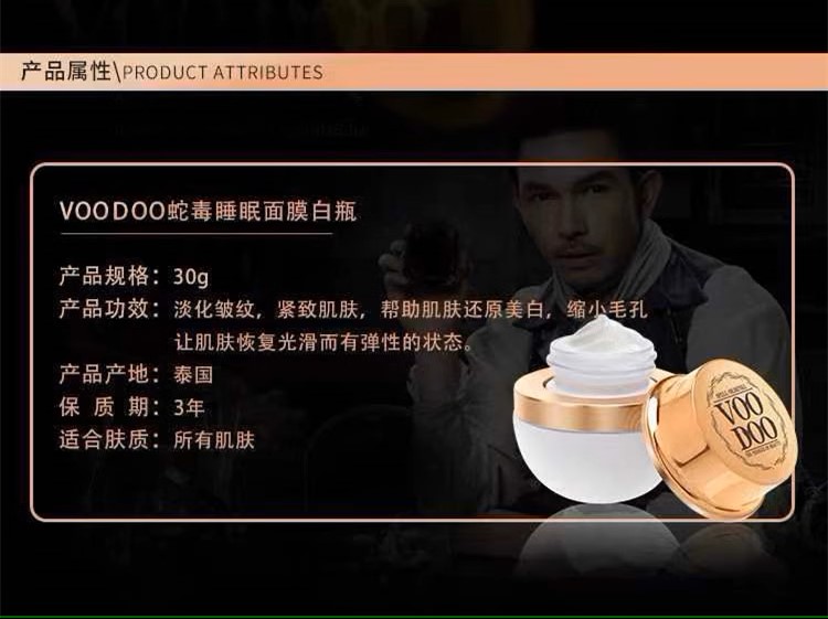 泰国voodoo蛇毒睡眠面膜-修复保养款(白瓶)30g黑瓶升级款免洗睡眠面膜提亮抗皱收缩毛孔紧致肌肤的功效