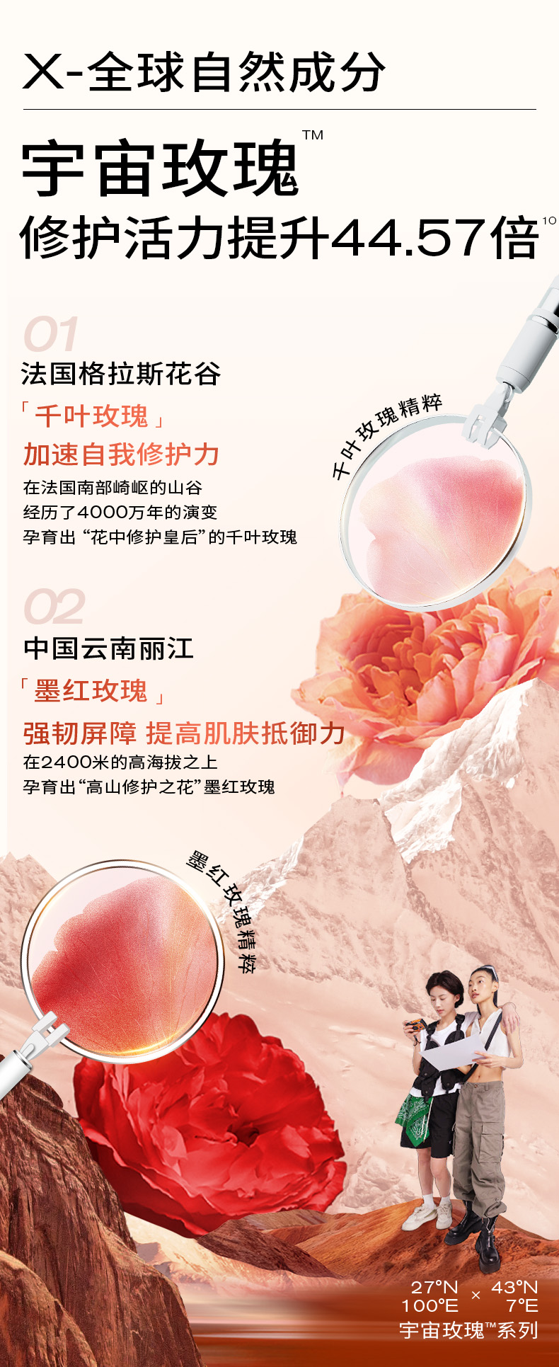 成分一:千叶玫瑰精粹+墨红玫瑰