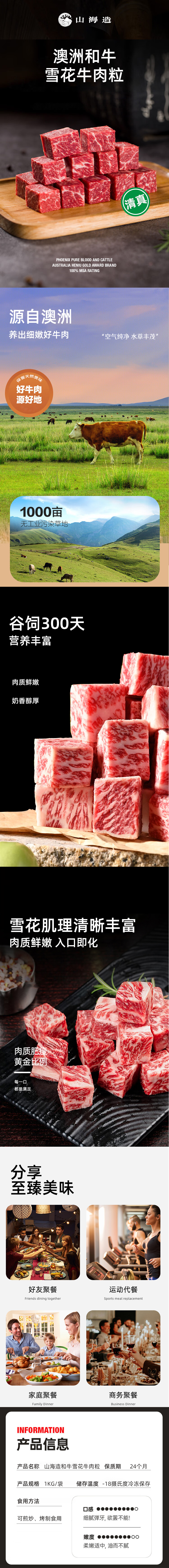 优选丨山海造和牛雪花牛肉粒清真和牛优质食材!淡淡奶香,口感独特!