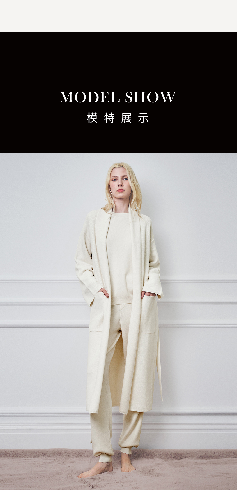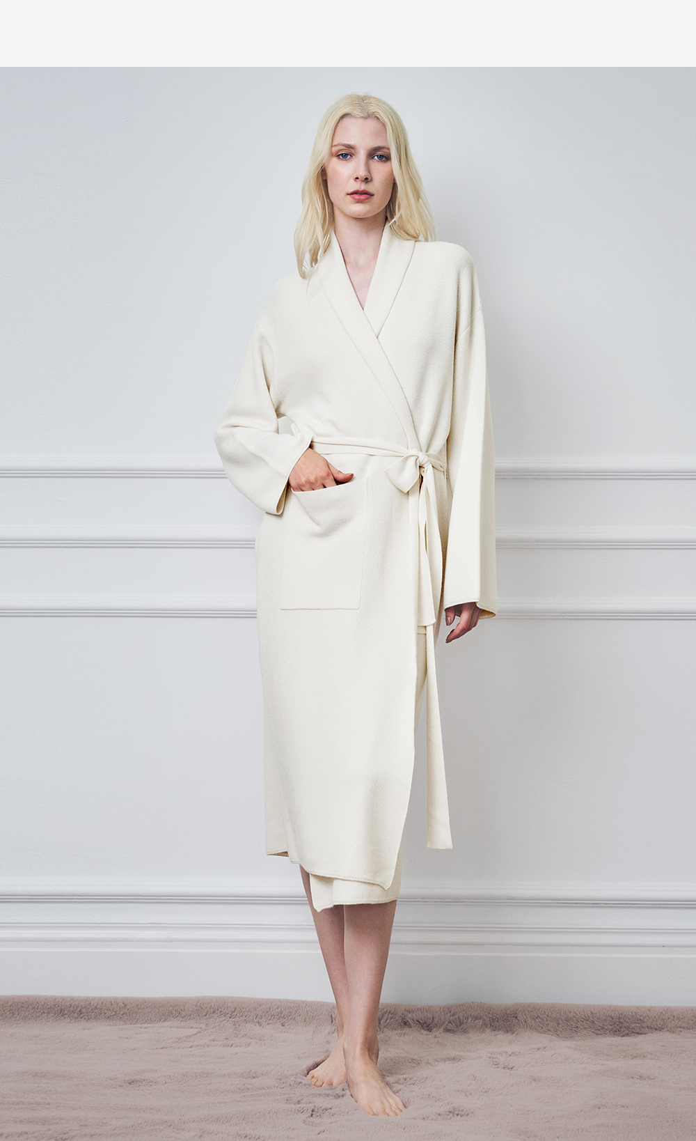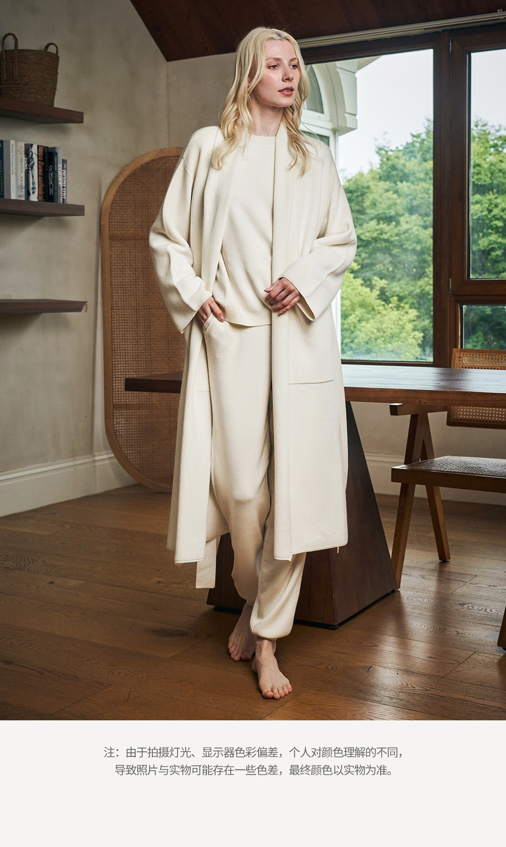 Solo seta女士绵羊毛桑蚕丝山羊绒纯色睡袍2025秋冬可外出对开襟