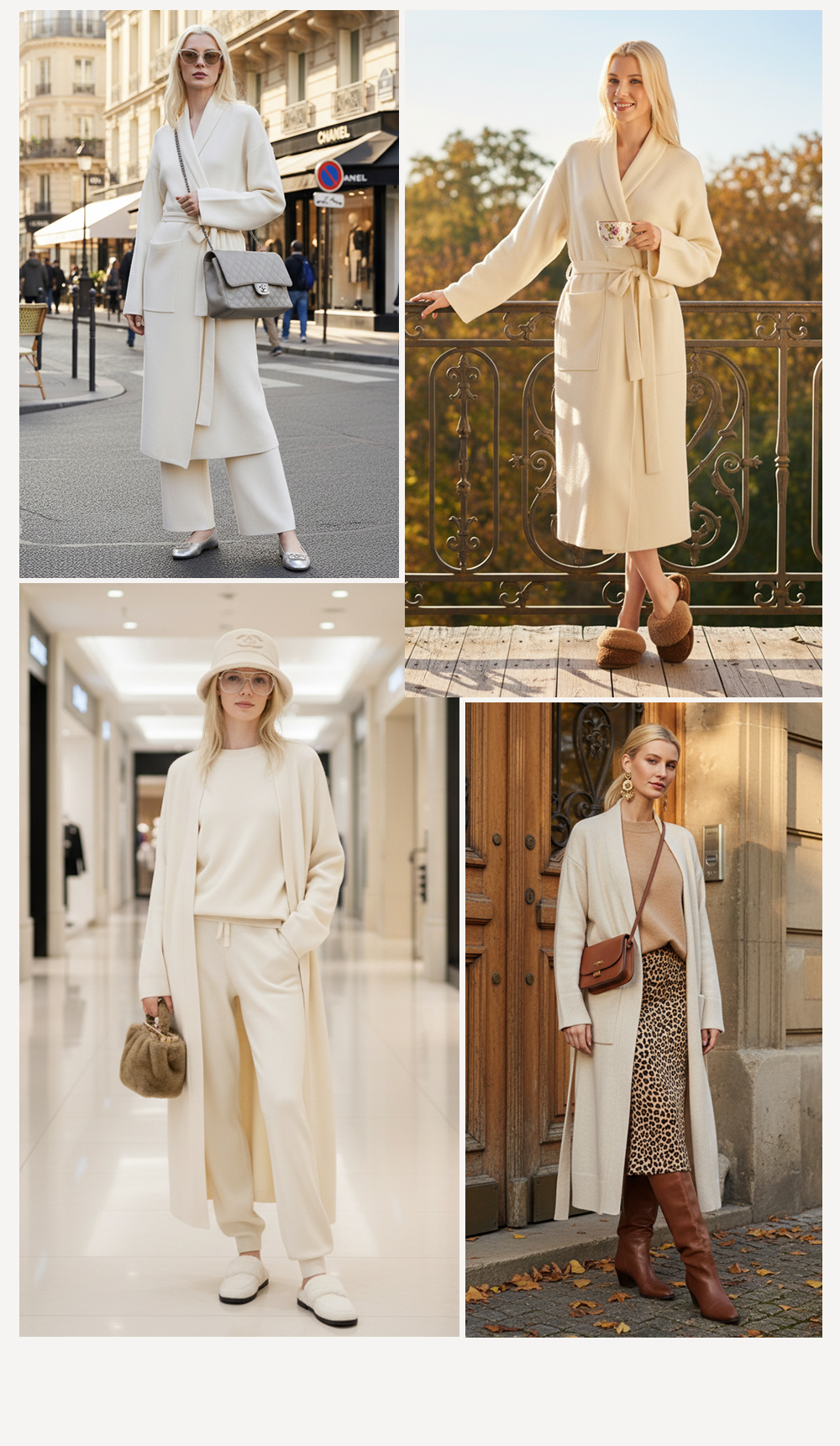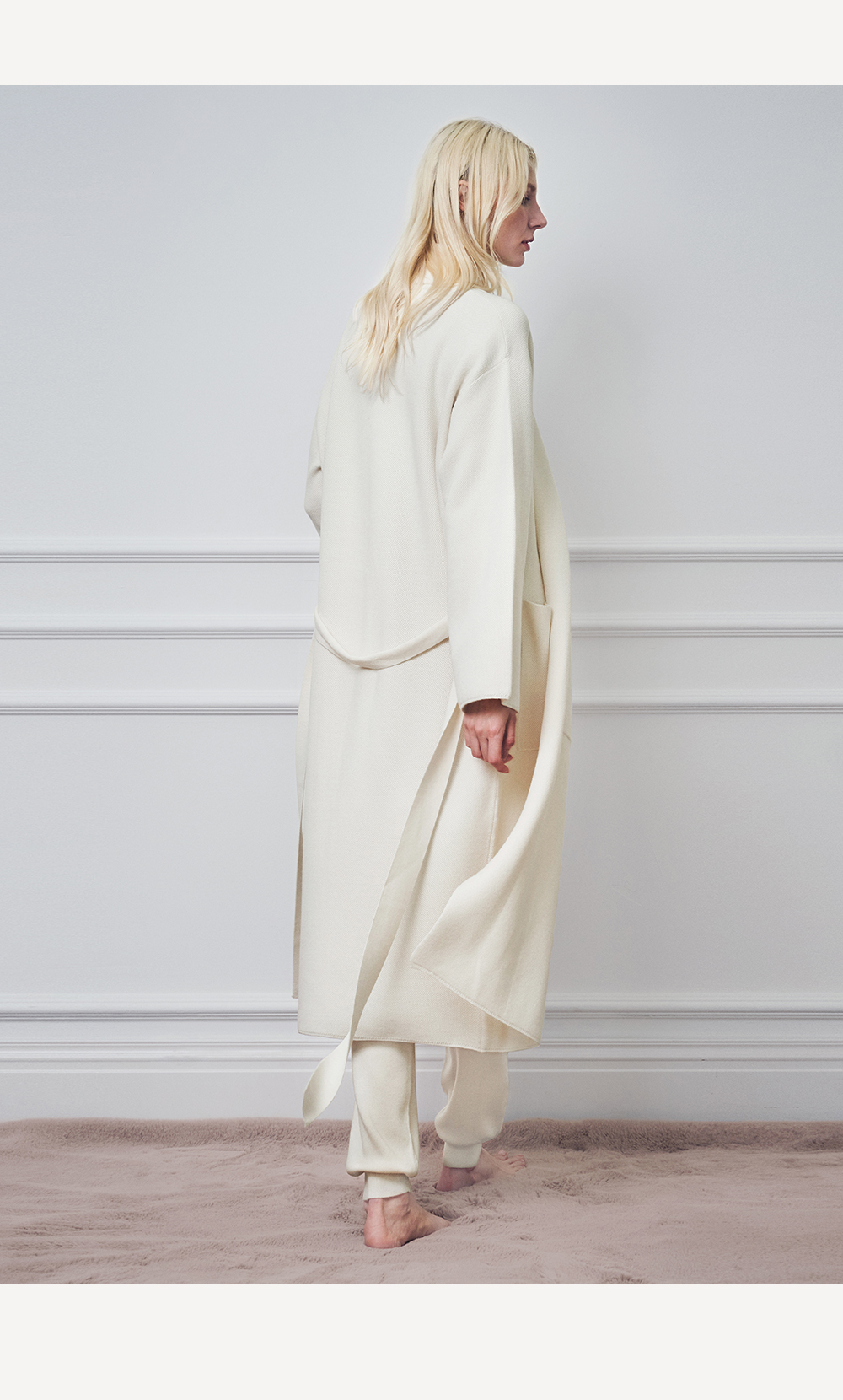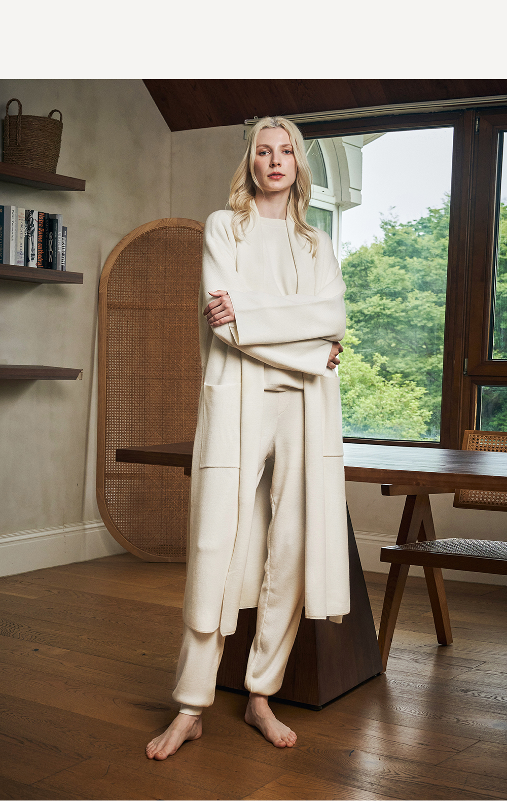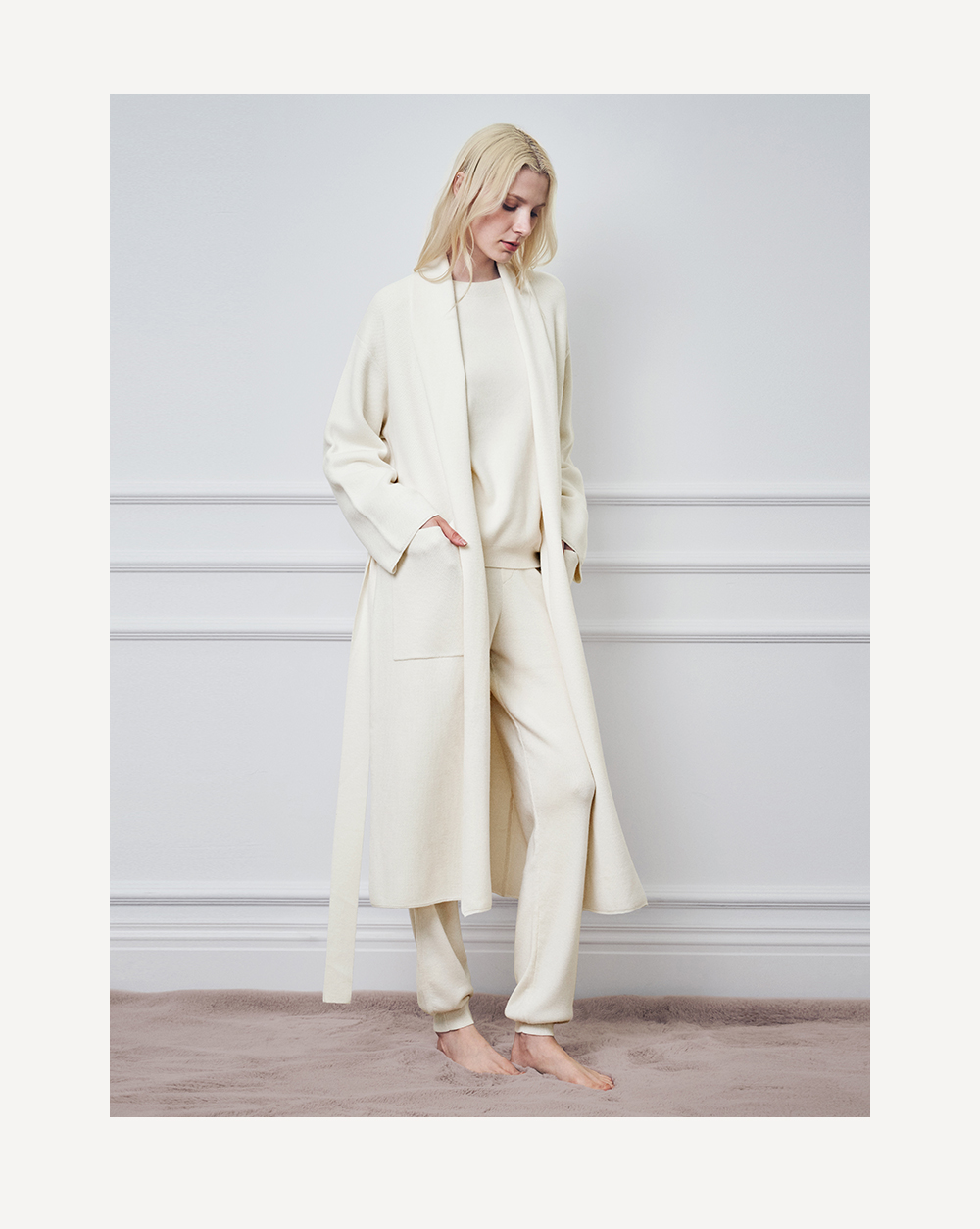 Solo seta女士绵羊毛桑蚕丝山羊绒纯色睡袍2025秋冬可外出对开襟