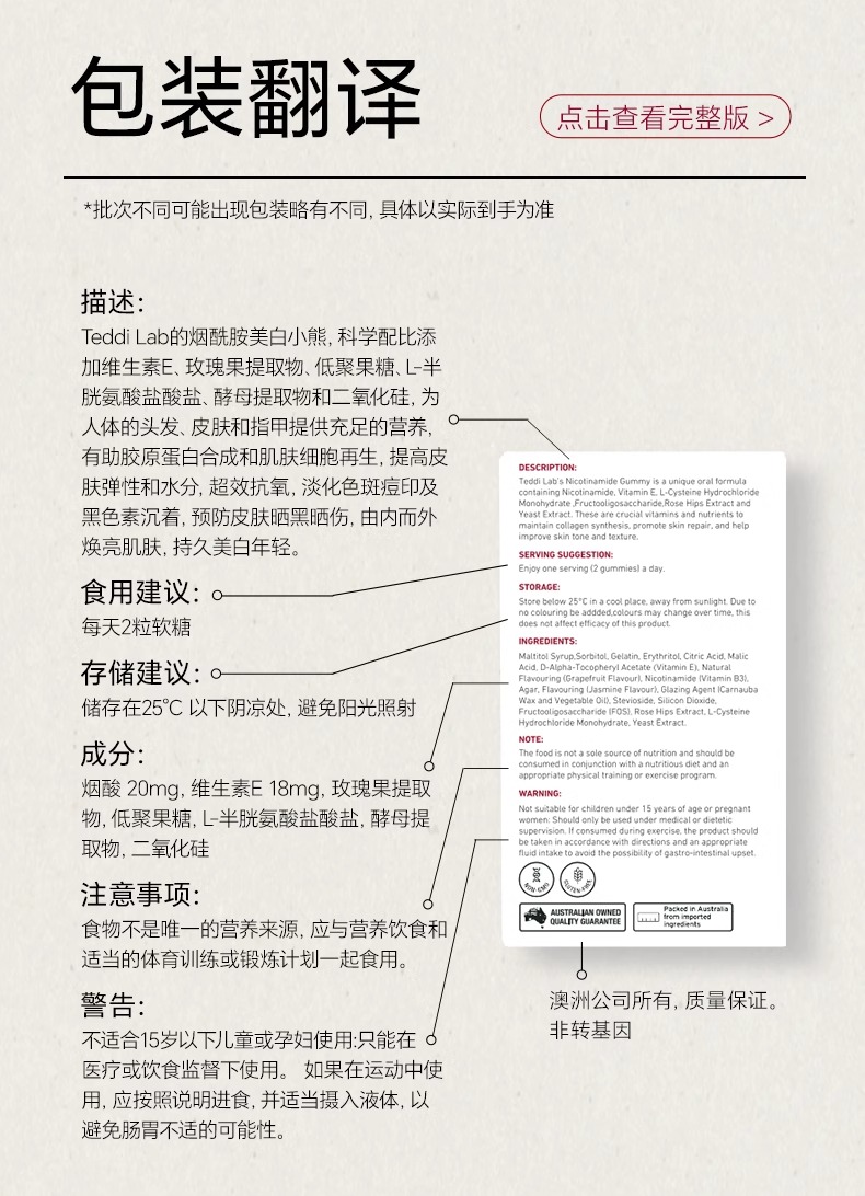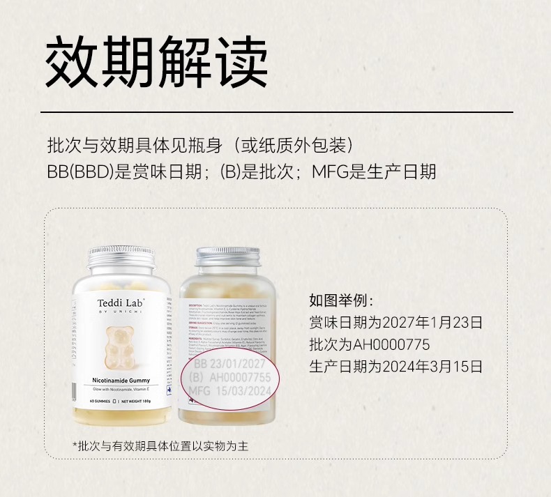 【保税仓】UNICHI烟酰胺玫瑰果亮肤小熊软糖 60粒/盒新版