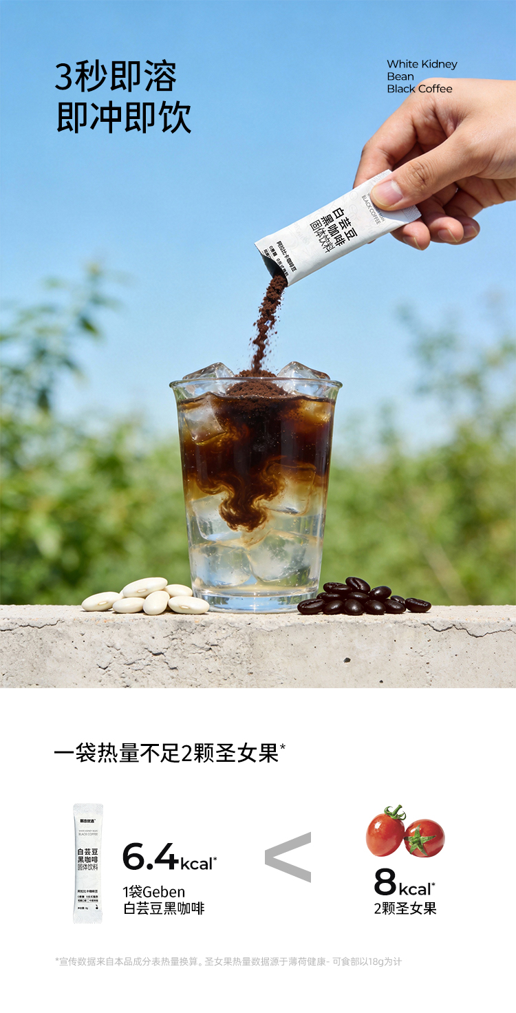3重燃力!燃出好身材·哥本白芸豆黑咖啡 特别添加左旋肉碱助燃 买50条或100条送冰川杯1只