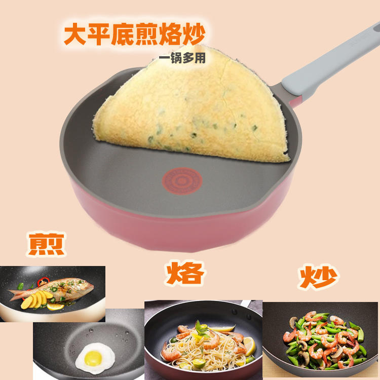 苏泊尔火红点钛磨力聚油煎锅陶晶铸系列NJ28WA4燃气炉和电磁炉通