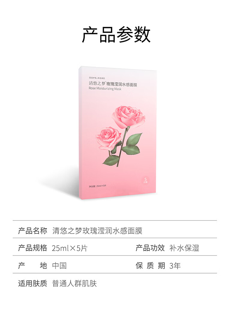 清悠之梦 玫瑰莹润水感面膜25ml*5