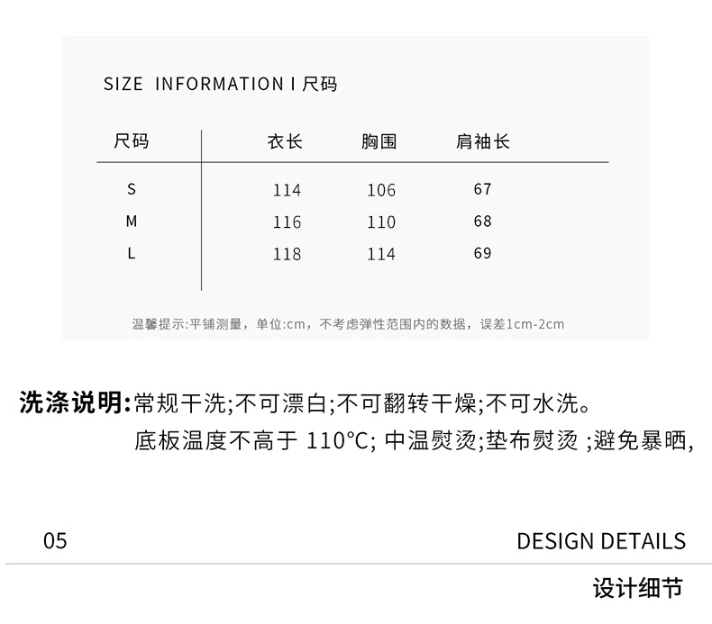 4.尺码信息以及推荐尺码数据根据平均身材得出,适用于大部分人群,仅供参考,买家也可以根据自己的穿衣喜好选择