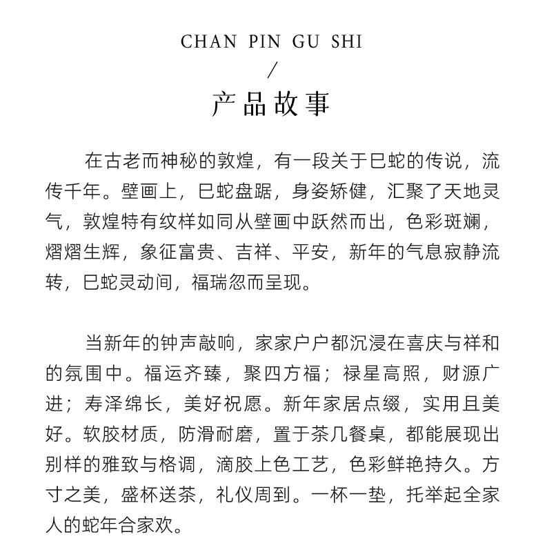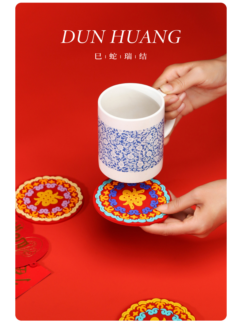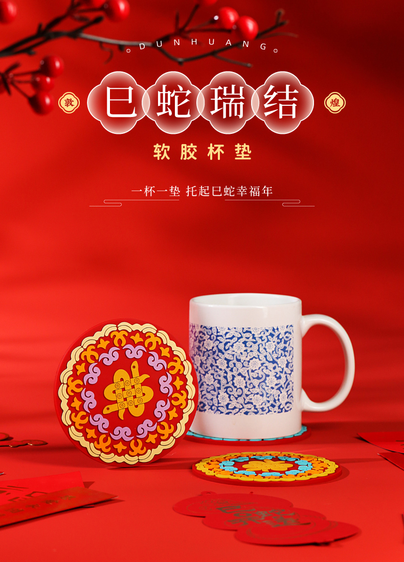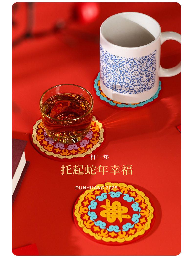 敦煌研究院【巳蛇瑞结软胶杯垫】防烫吸水隔热垫高级感轻奢茶垫咖啡垫