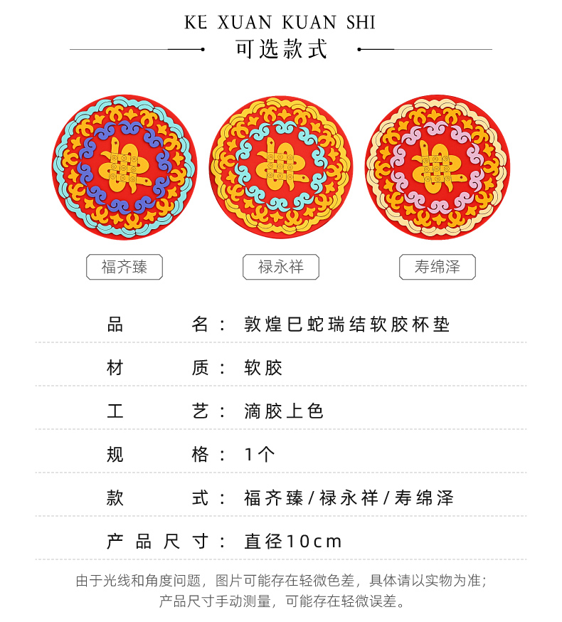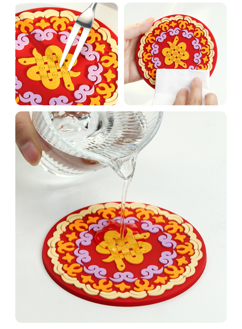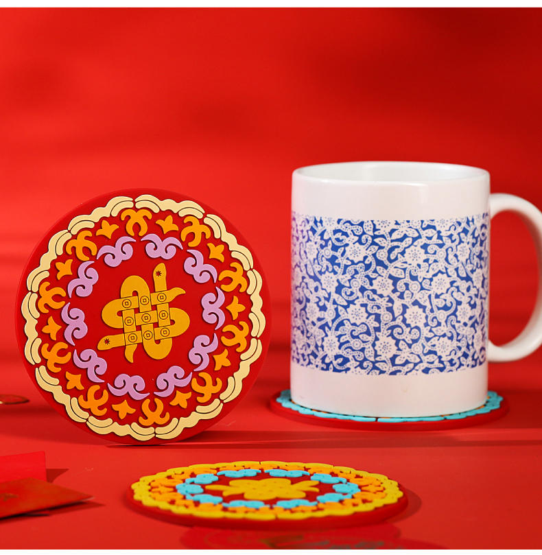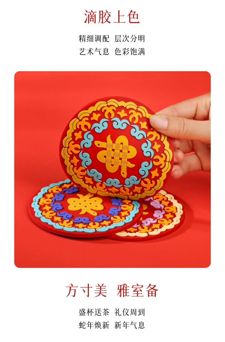 敦煌研究院【巳蛇瑞结软胶杯垫】防烫吸水隔热垫高级感轻奢茶垫咖啡垫
